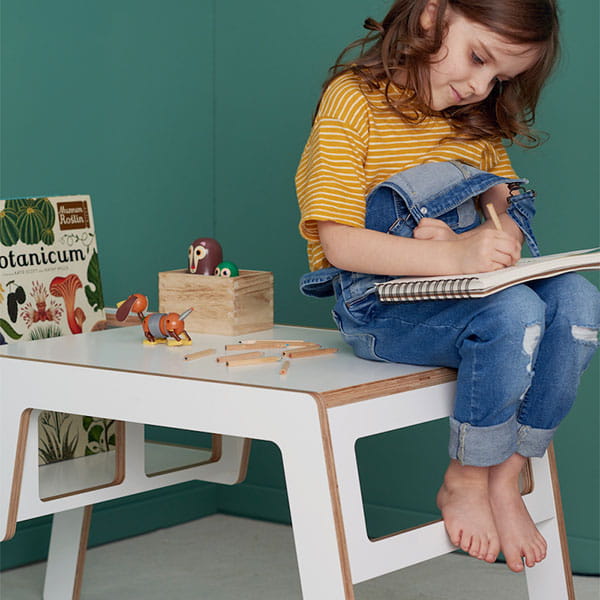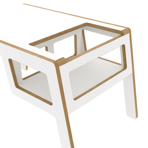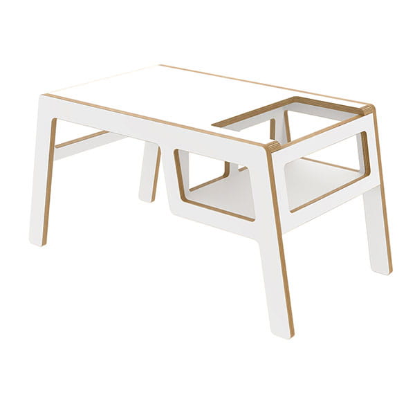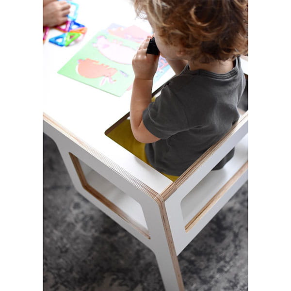 Flex to wielofunkcyjny stolik wykonany z naturalnej brzozowej sklejki. Składa się z blatu oraz zabudowanego siedziska, zapewniającego niemowlakom i nieco starszym maluszkom bezpieczne jedzenie, rysowanie czy dowolną interakcję z rodzeństwem oraz rodzicem.