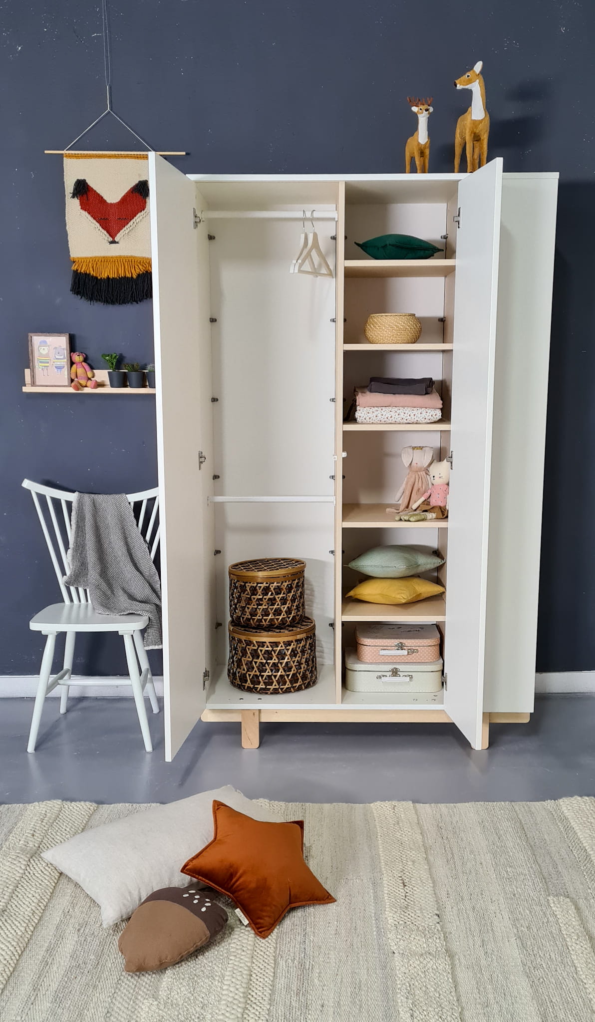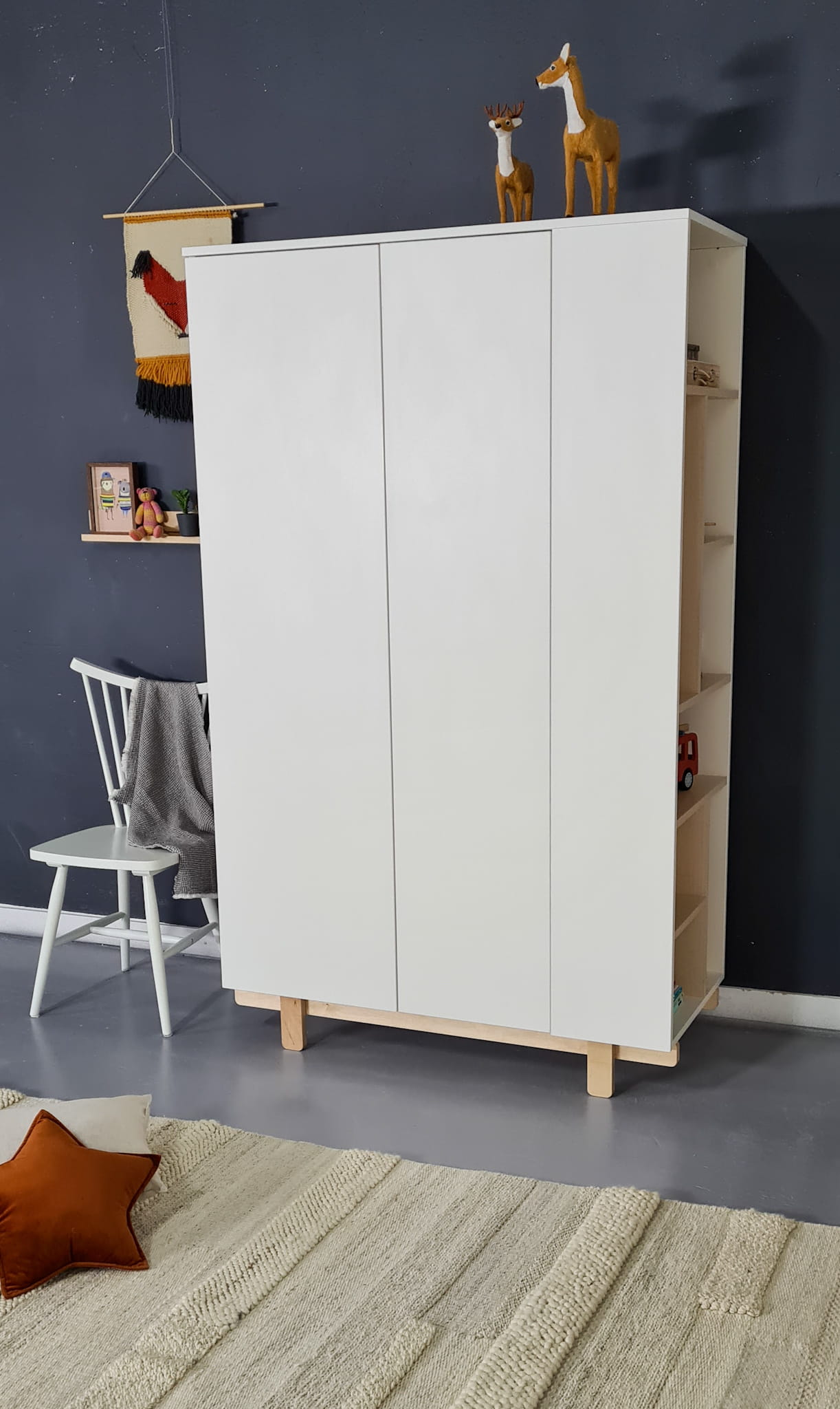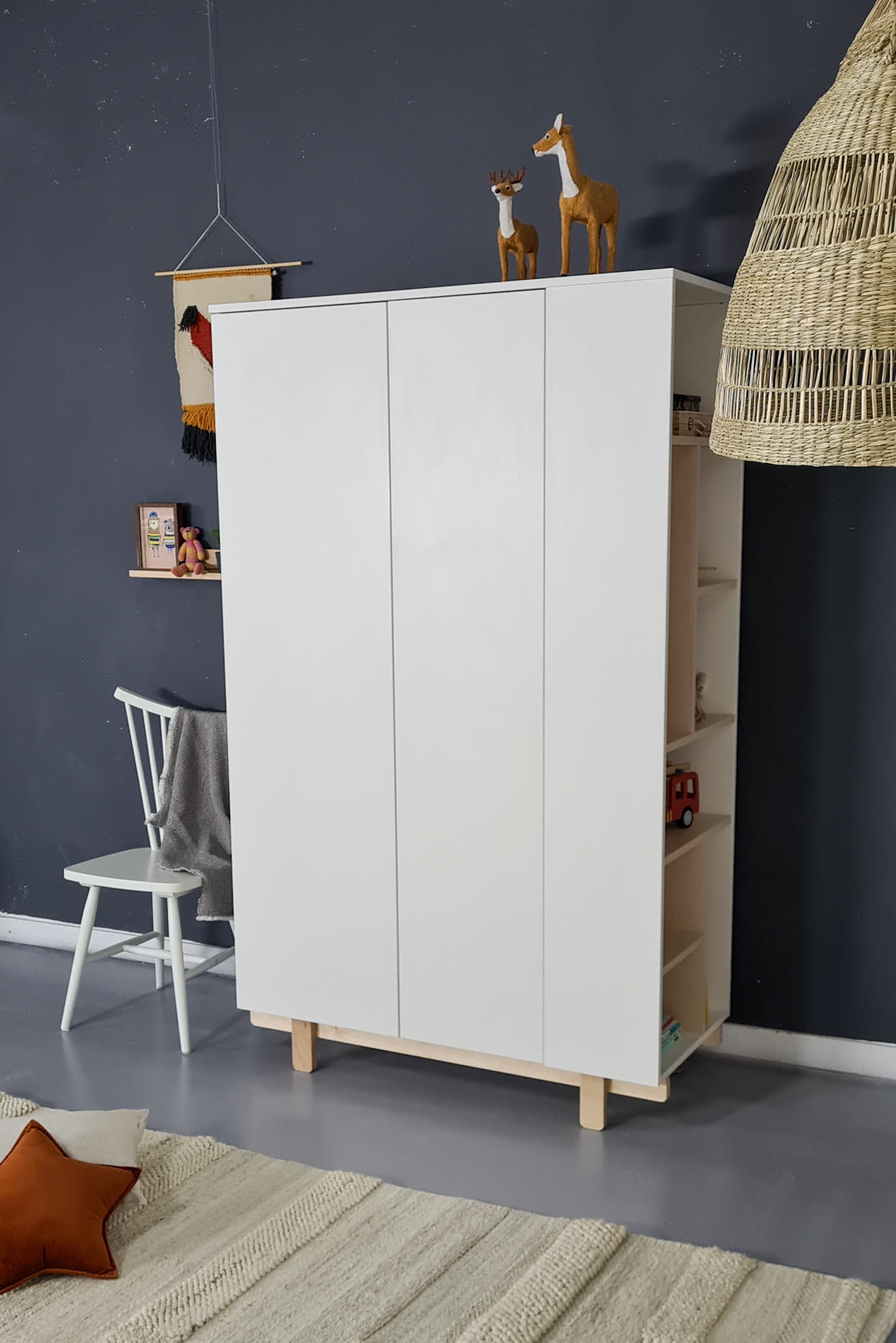 Stwórz wyjątkowe miejsce do przechowywania z tą stylową i praktyczną szafą Basic, która doskonale dopełni aranżację każdego pokoju dziecięcego w skandynawskim stylu. Stanowi niezbędny element kolekcji mebli Basic: