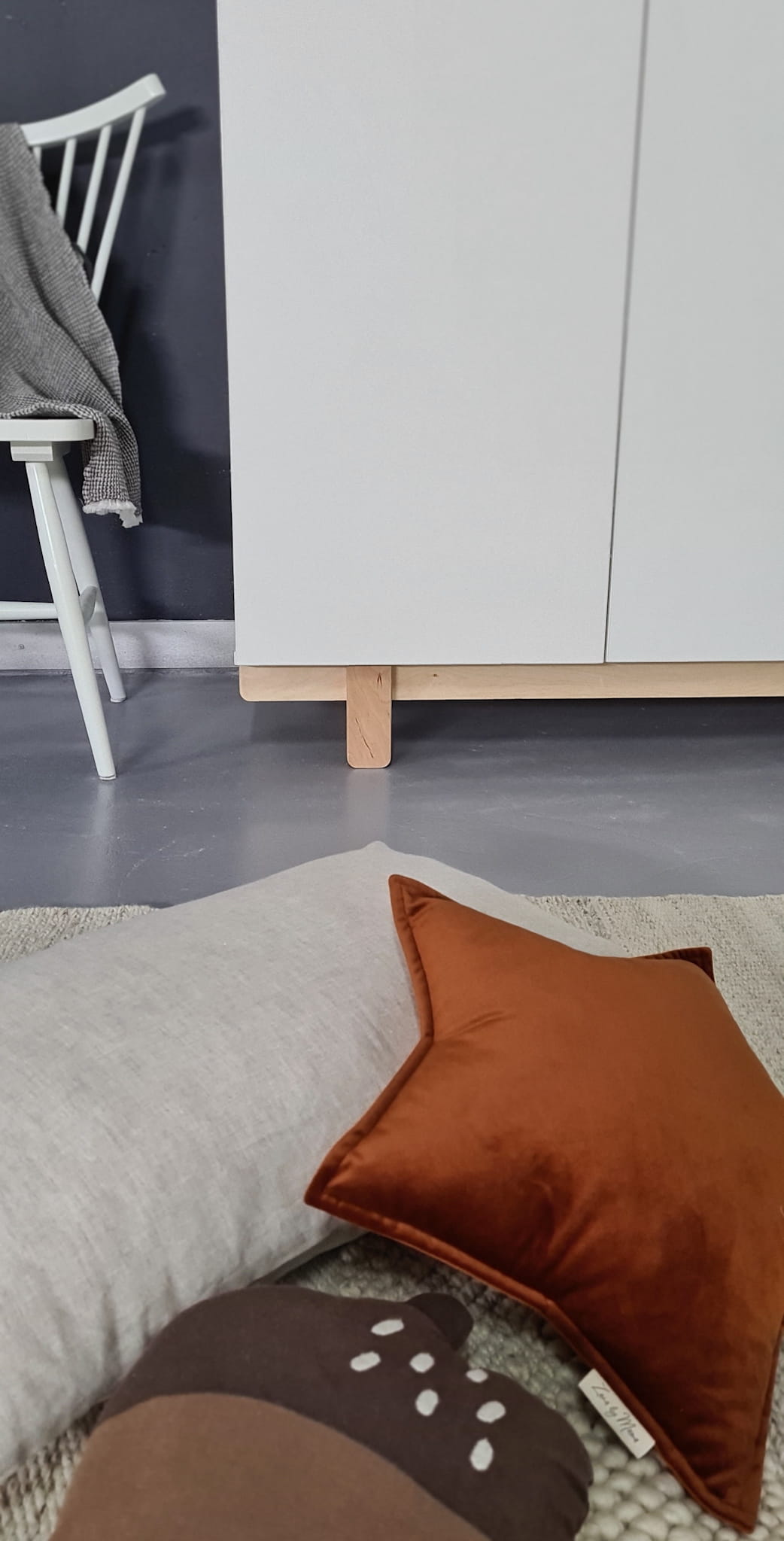 - Materiały: Szafa wykonana jest z malowanej płyty MDF (fronty i blat górny), płyty meblowej oraz sklejki brzozowej (nogi), które spełniają rygorystyczne normy bezpieczeństwa EN71/3 dotyczące mebli dziecięcych oraz zabawek.