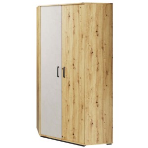 Funkcjonalna szafa narożna Qubic QB‑01 z dwoma drążkami i ośmioma półkami — maksymalne wykorzystanie rogu pokoju młodzieżowego.