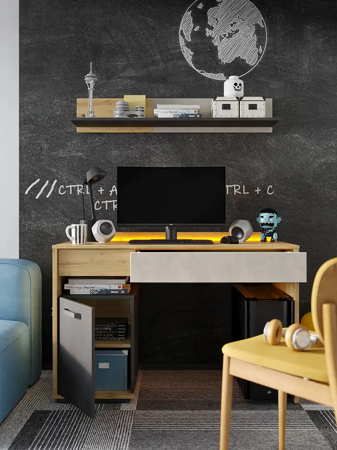 - Biurko Qubic QB‑08 – nowoczesne i ergonomiczne biurko z LED, szufladami i szafką