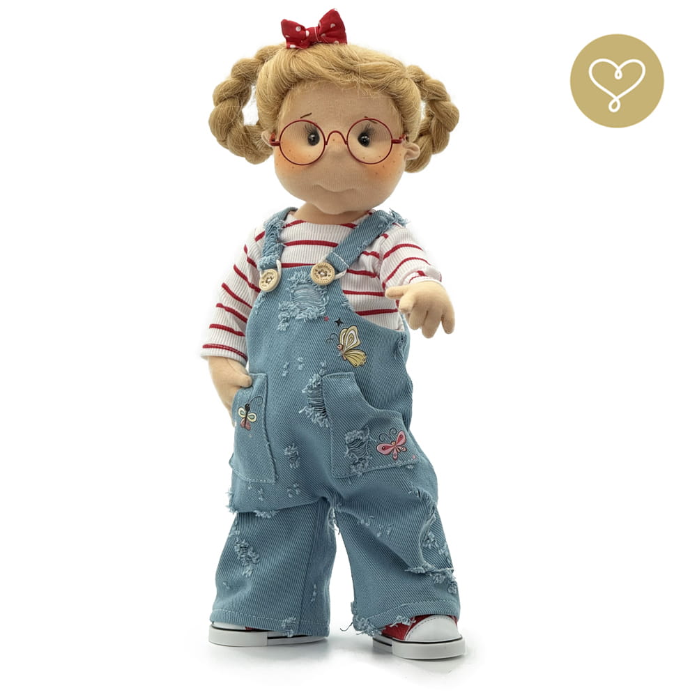 Zuzia wyróżnia się naturalnymi włosami z alpaki, które są miękkie, lekkie i przyjazne dla alergików. Można je czesać, kręcić lokówką lub prostować, co pozwala tworzyć nieograniczoną liczbę fryzur. W zestawie znajdują się również okularki, które dodają jej charakteru i uroku.