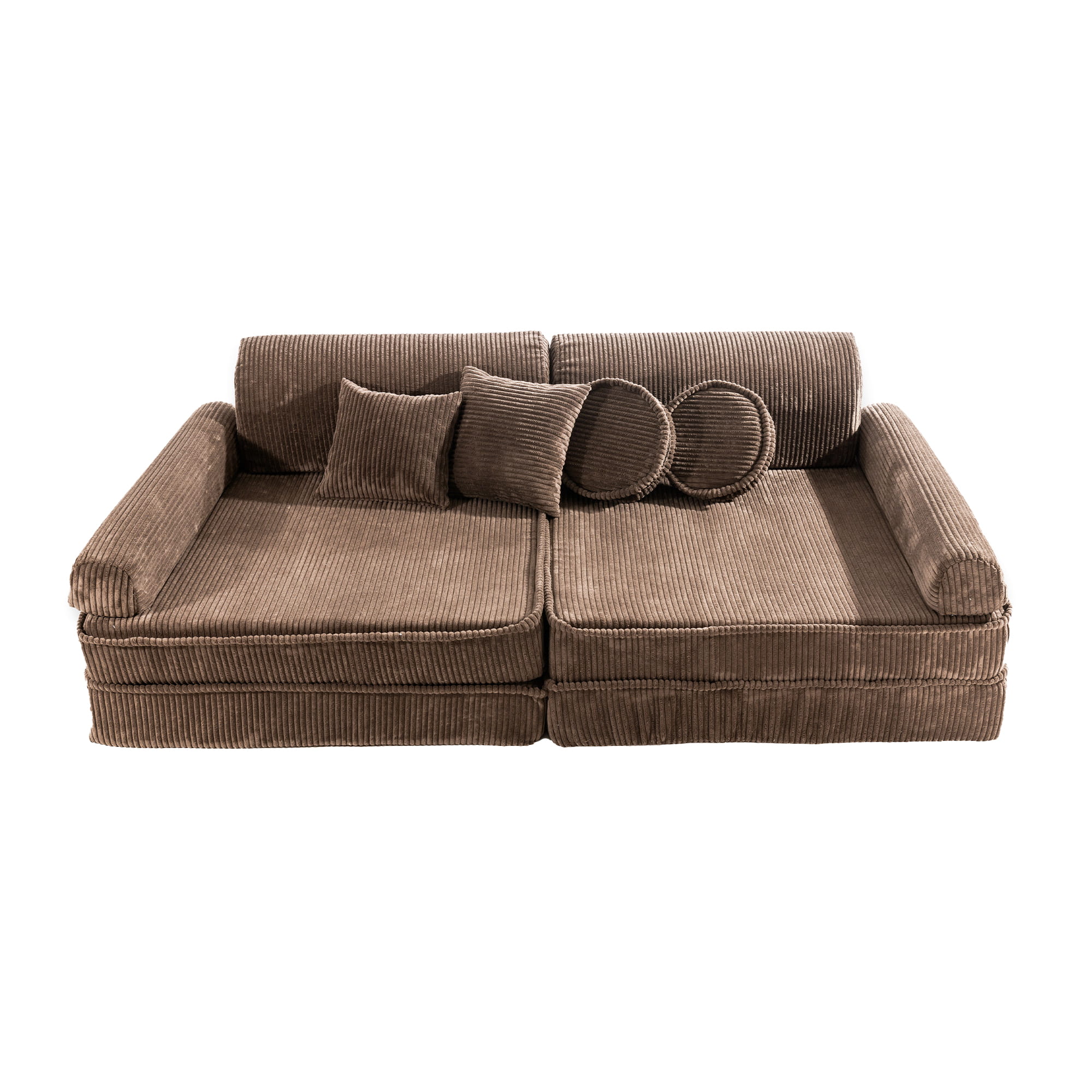 Sztruksowa sofa dziecięca Premium Brązowa MeowBaby® Aesthetic to komfortowy, modułowy mebel do pokoju dziecięcego. Miękkie elementy i rozkładana konstrukcja zapewniają bezpieczeństwo, zabawę i relaks, wspierając rozwój dziecka.