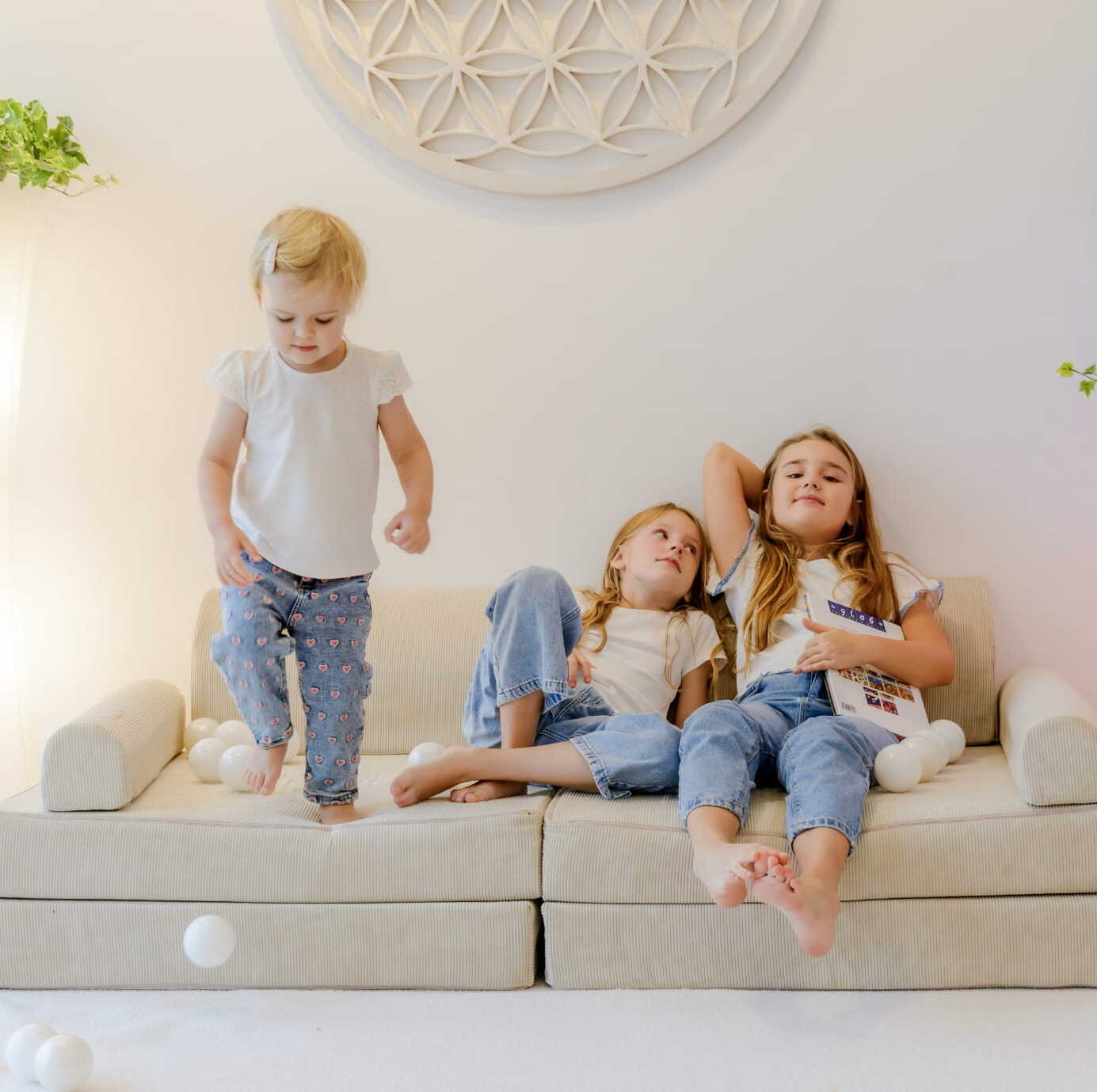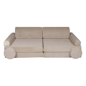 Sztruksowa sofa dziecięca Premium Beżowa MeowBaby® to stylowy i komfortowy mebel do pokoju dziecięcego. Rozkładana konstrukcja oraz dodatkowe pufki zapewniają wszechstronność i bezpieczeństwo, idealną do zabawy, odpoczynku i nauki.