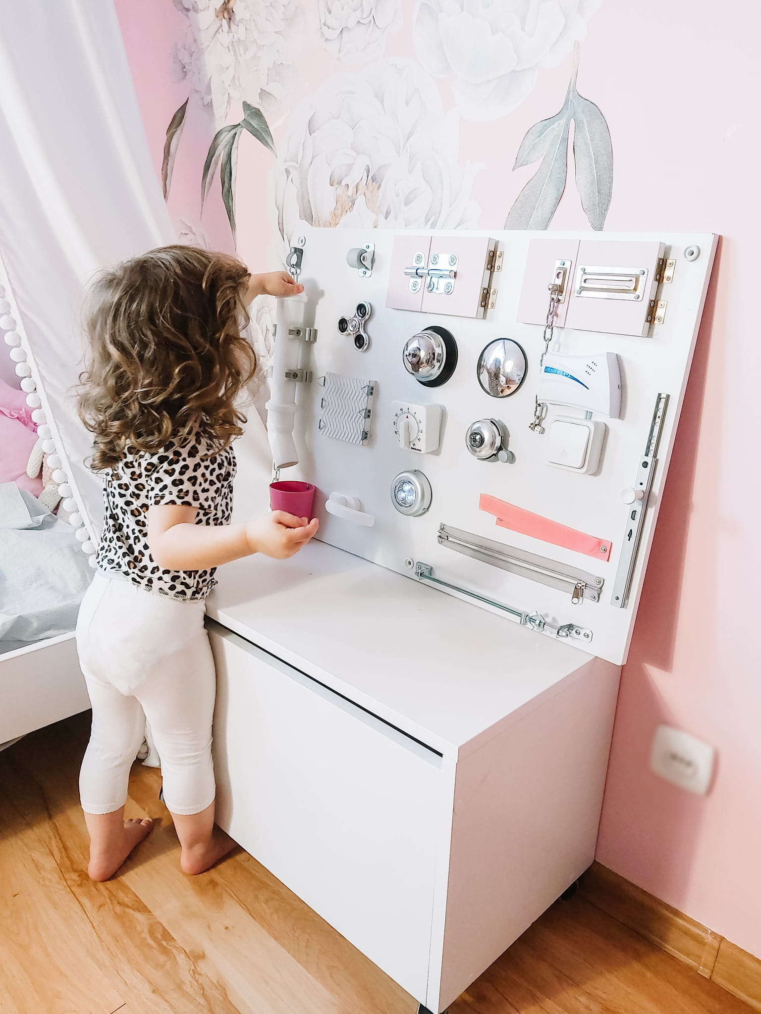 Tablica manipulacyjna Różowa - kreatywna zabawka dla dzieci