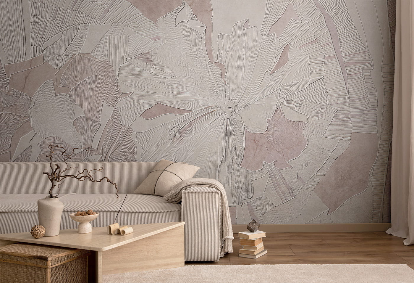 - Estetyka: Nowoczesny design tapety, inspirowany naturą, pasuje do różnych stylów wnętrz, od klasycznych po nowoczesne, dodając im lekkości i romantyzmu.
