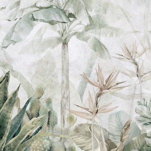 Tapeta "Paradise - Sage Green" to prawdziwy oddech świeżości i egzotycznych wrażeń, który wprowadzi do Twojego salonu i sypialni atmosferę tropikalnego raju. Inspirujące motywy roślinności i kwiatów strelicji nadadzą Twojemu wnętrzu wyjątkowego uroku, łącząc naturę z nowoczesnym stylem.