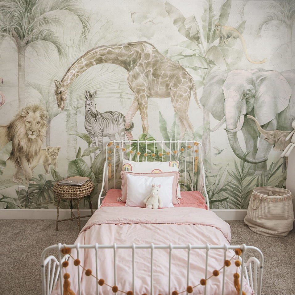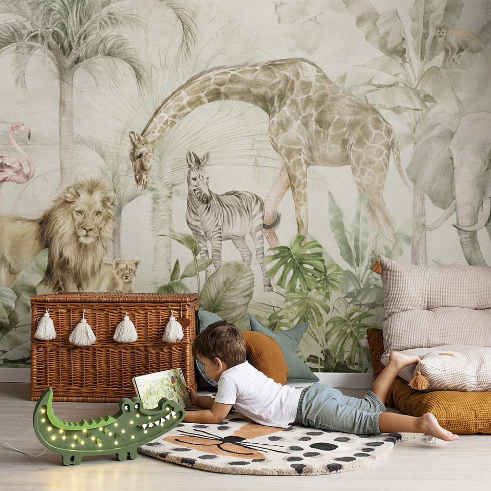 Tapeta Malumi Dżungla / Safari Z Liśćmi I Zwierzętami