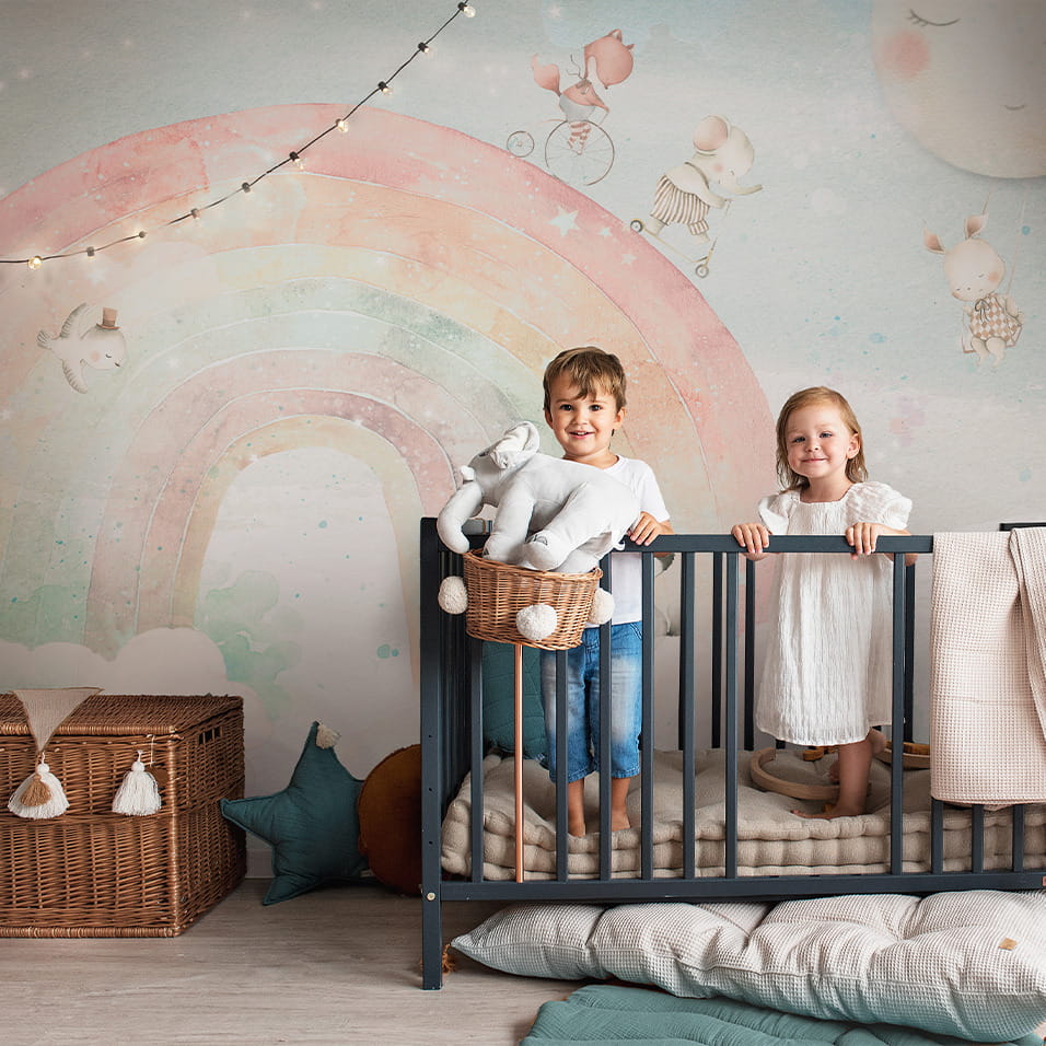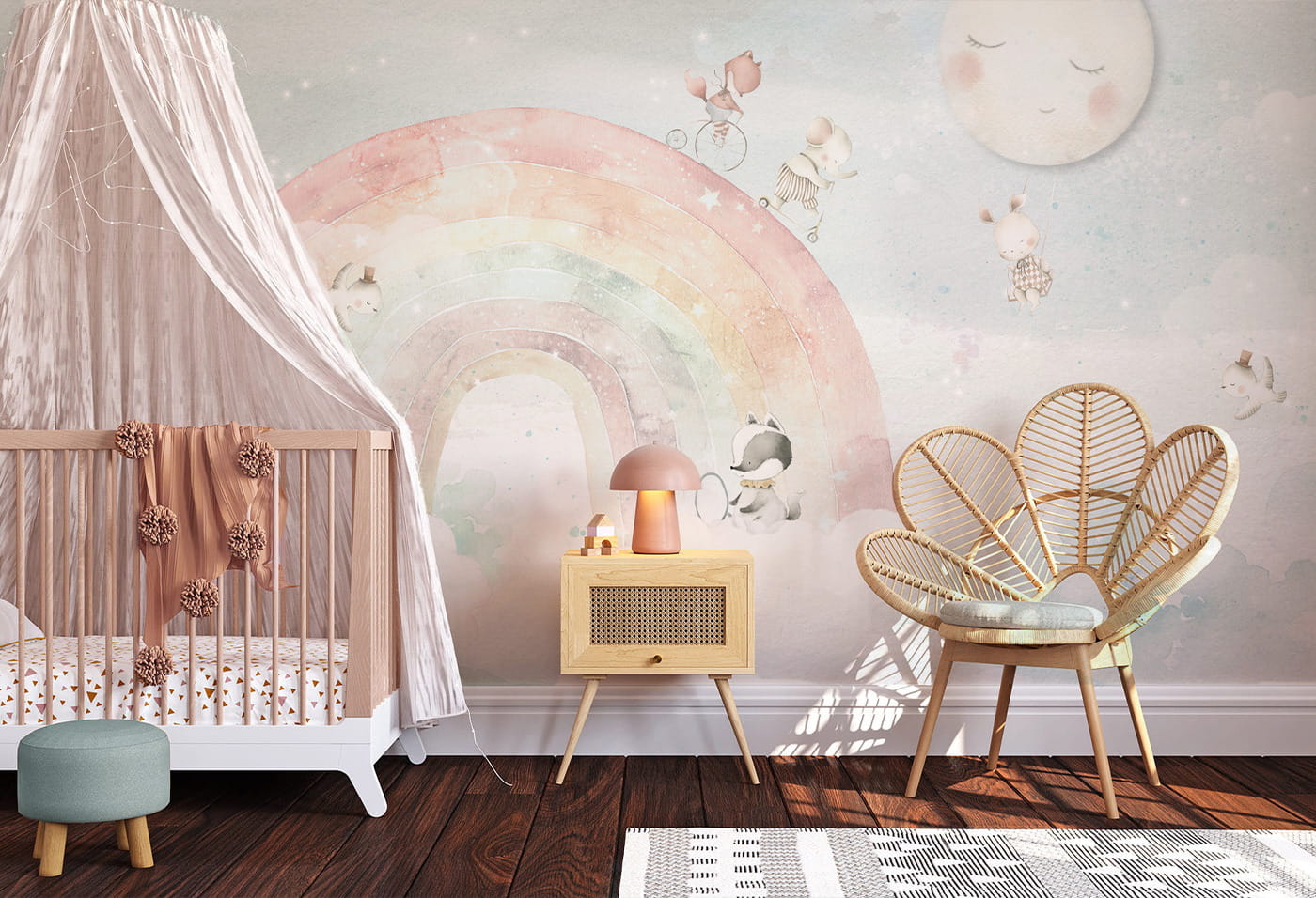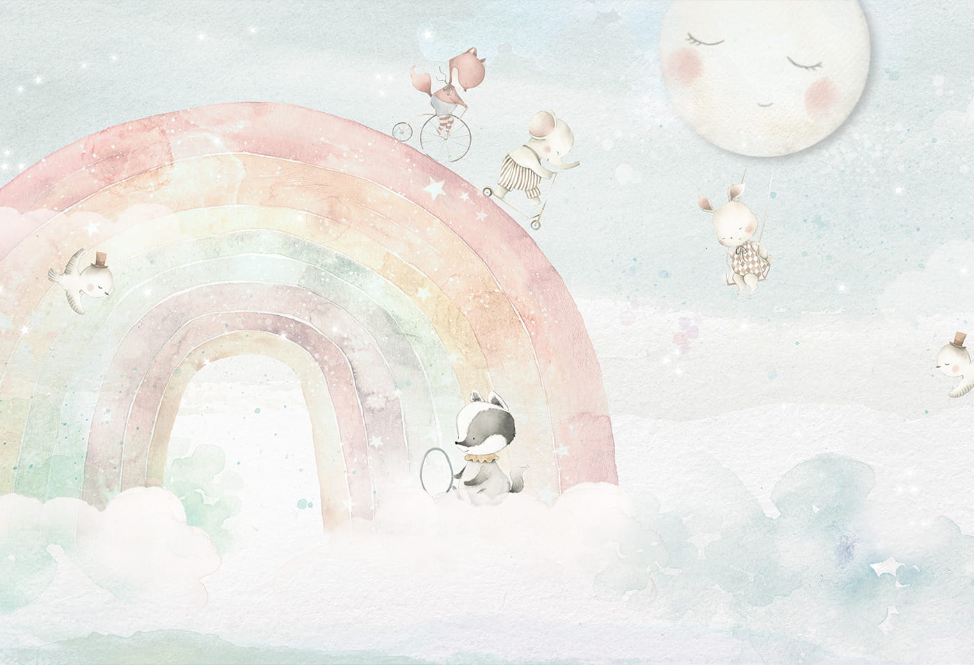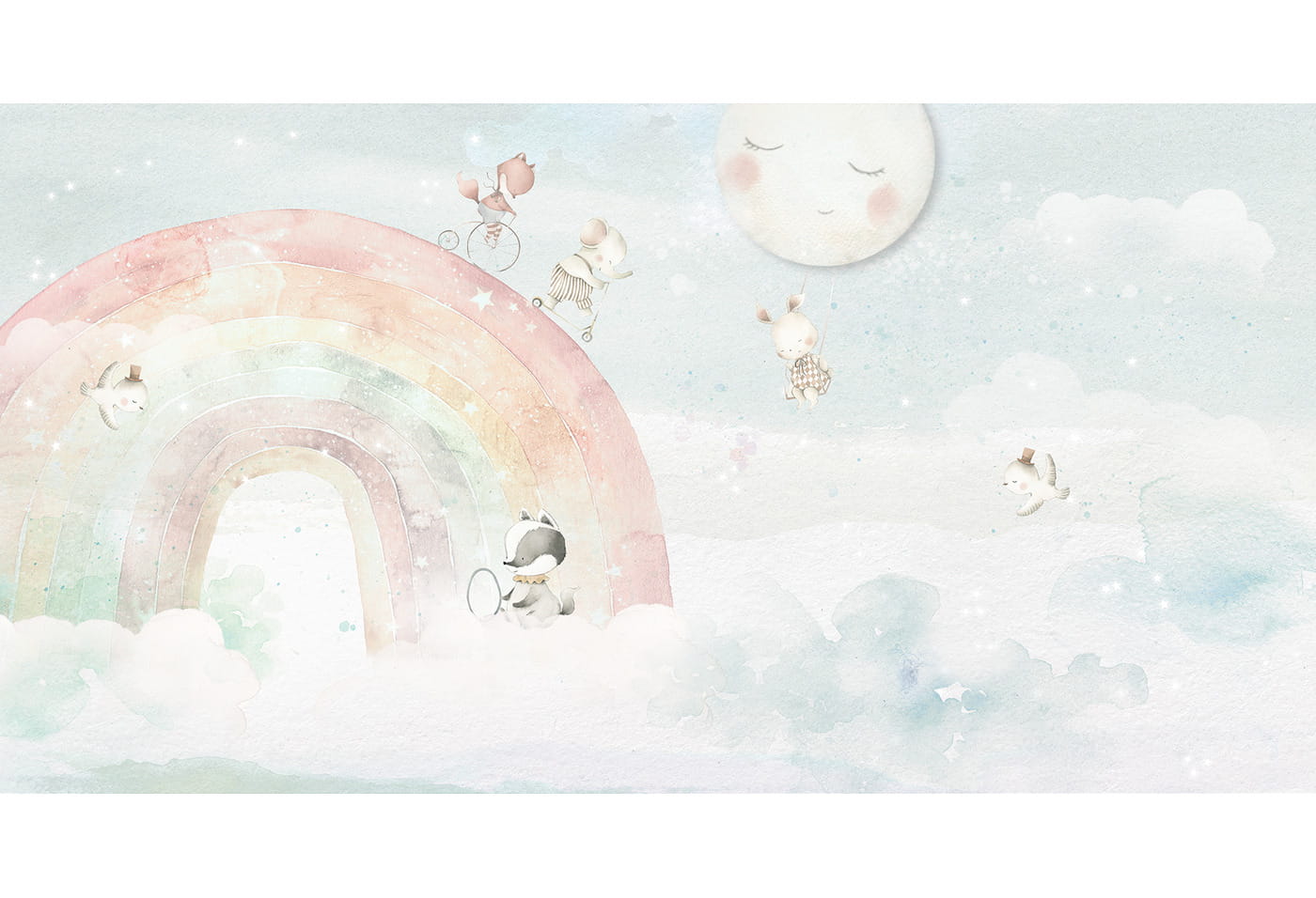 Tapeta Malumi RAINBOW - Mint - Z Tęczą I Zwierzątkami