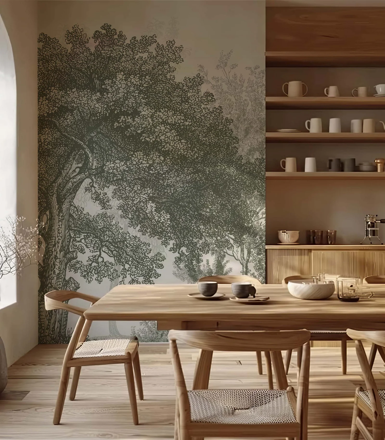 Trend Sezonu: Motyw drzew w zieleni vintage to jeden z najgorętszych trendów sezonu, który wprowadza do wnętrza modny i stylowy akcent.