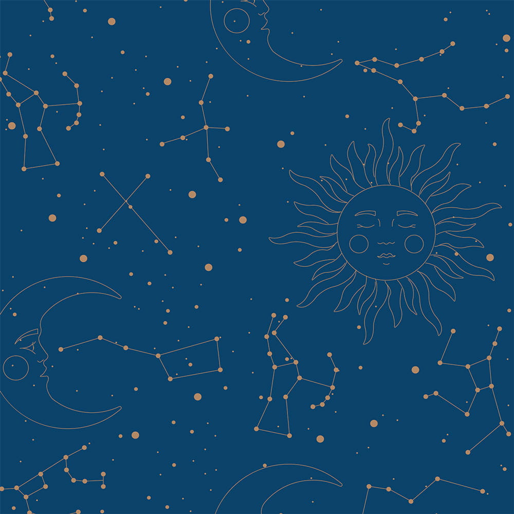 O takim wzorze myśleliśmy od… kilku ładnych lat! Mamy już kosmiczne tapety typowe dla dzieci – z rakietami i kometami, jednak marzyliśmy też o wzorze bardziej astronomicznym – z gwiazdozbiorami oraz słońcem i księżycem malowanymi w taki sposób, jak na starych rycinach. I w kolekcji CLASSIC musieliśmy zawrzeć taki wzór, jednak z nowoczesnym twistem – „malowany” graficznie i oszczędnie. Wzór (obie jego wersje – granatowa i biała) przecudownie prezentują się w pokojach, wprowadzając do nich magię. Słońce i księżyc na tapecie mają rozmiary ok. 35-40 cm.