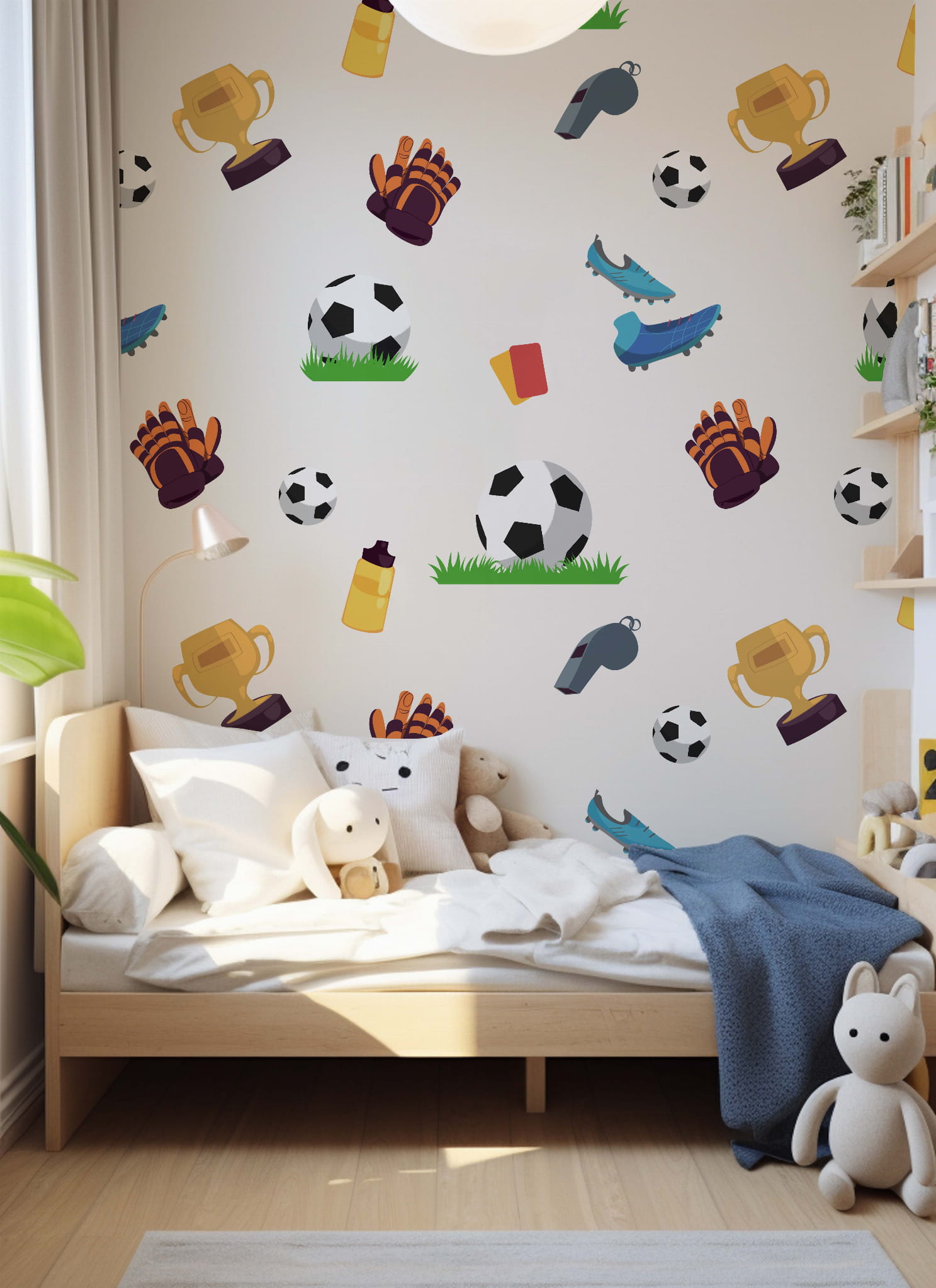 Tapeta Football Fana to świetny wybór dla małych kibiców, którzy chcą otaczać się sportową atmosferą. Idealna do pokoju pełnego energii, piłkarskich emocji i marzeń o wielkich meczach!
