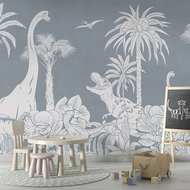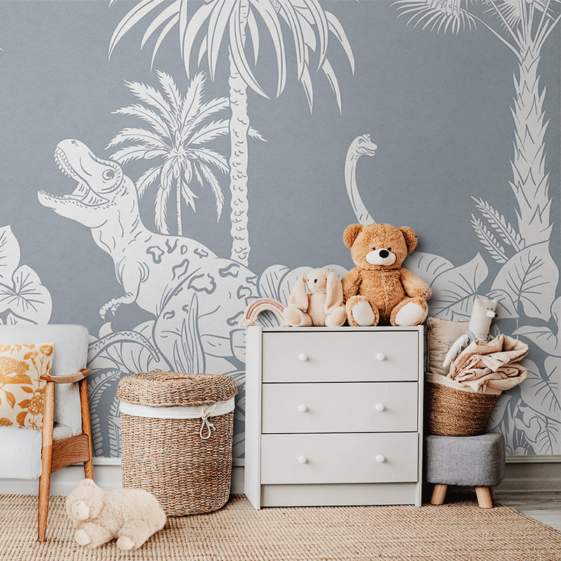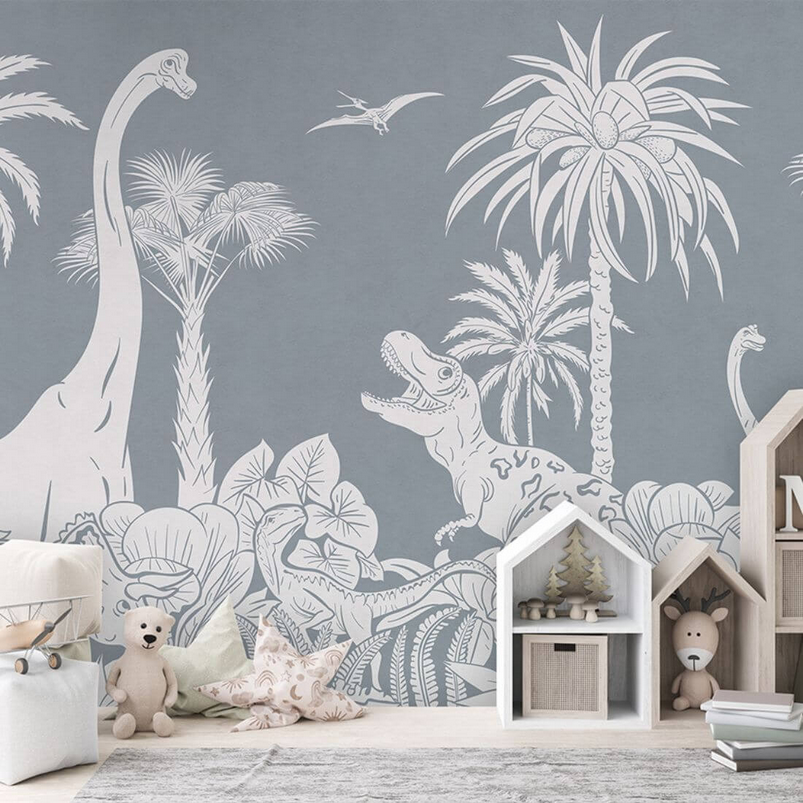 Tapeta do pokoju dziecka Monochrome Niebieskie Dinozaury