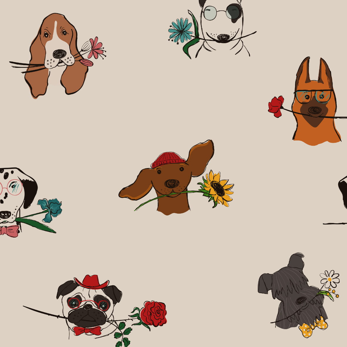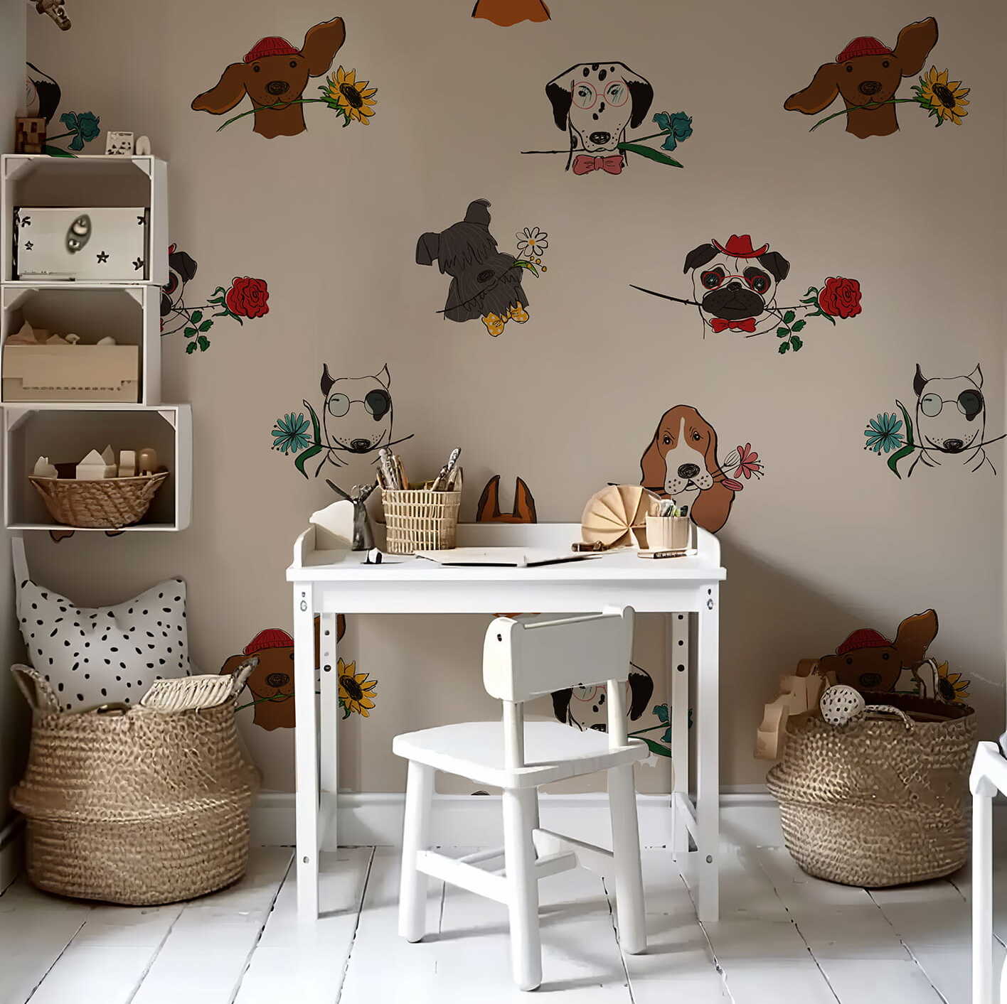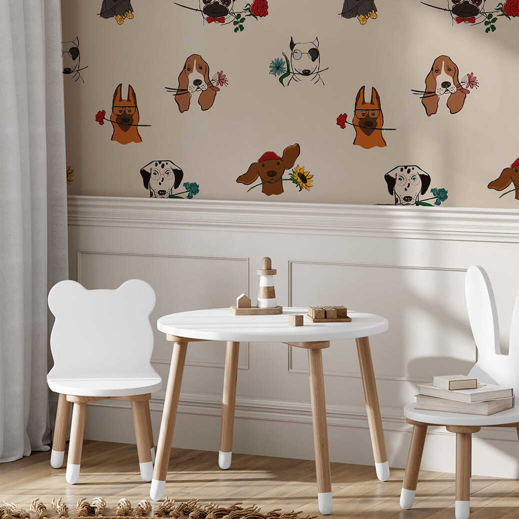 Tapeta do pokoju dziecka Pieski z Kwiatami