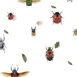 - Kolorystyka: Tło tapety może być w jasnym, neutralnym kolorze, takim jak biel, jasny beż czy pastelowy odcień, co podkreśli intensywne kolory robaczków i liści. Kolory robaczków mogą być zróżnicowane – od czerwieni biedronek, przez żółcie pszczółek, po różne odcienie zieleni listków.