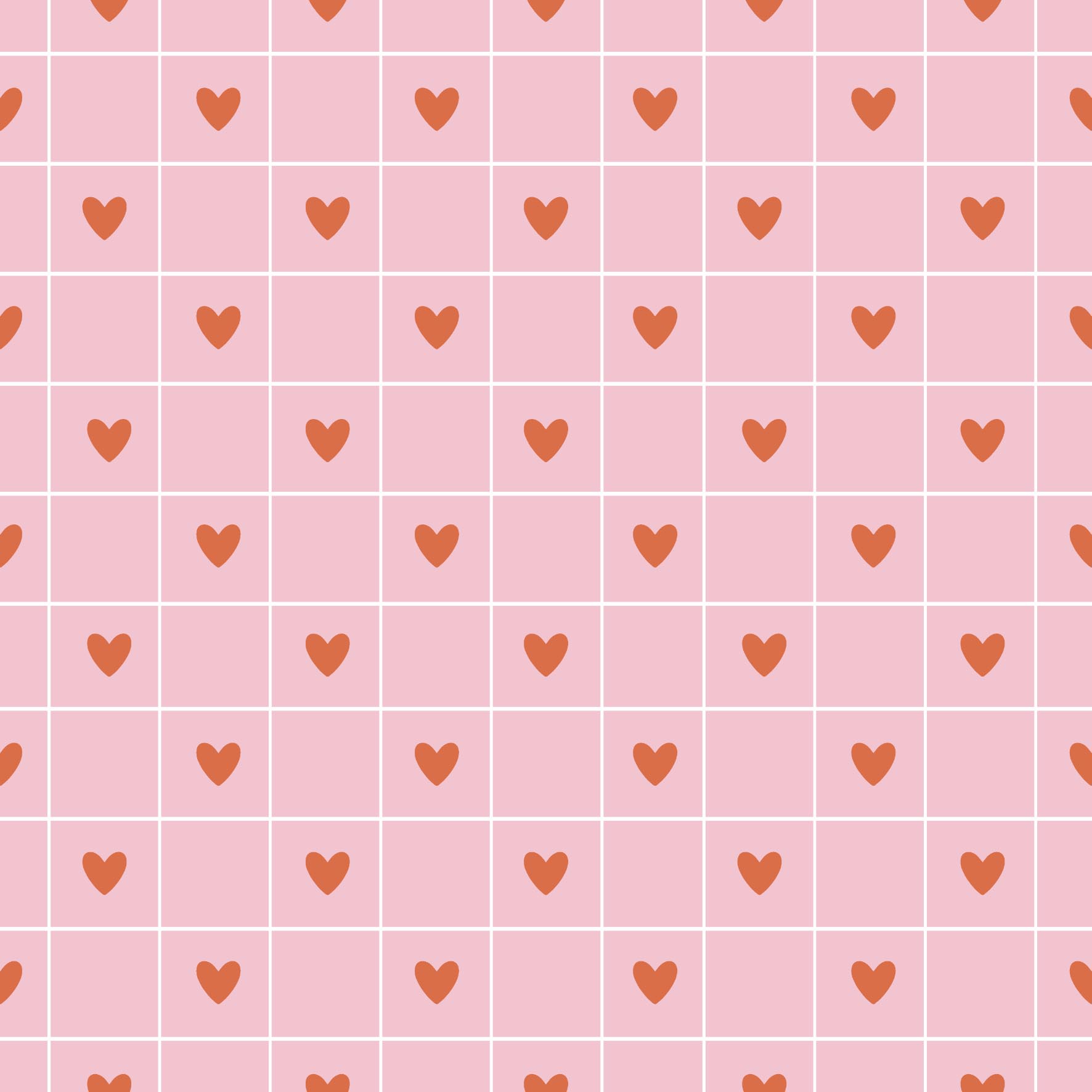 - Motyw: Tapeta przedstawia drobne serduszka, które są umieszczone wewnątrz delikatnej kratki. Serduszka mogą być w różnych kolorach, takich jak pastelowy róż, miękki błękit, jasna zieleń lub subtelna żółć. Każde serduszko znajduje się w kwadracie kratki, tworząc powtarzalny, harmonijny wzór. Kratka jest delikatna, najczęściej w odcieniach bieli lub jasnej szarości, co nadaje całości lekkiego i subtelnego charakteru.