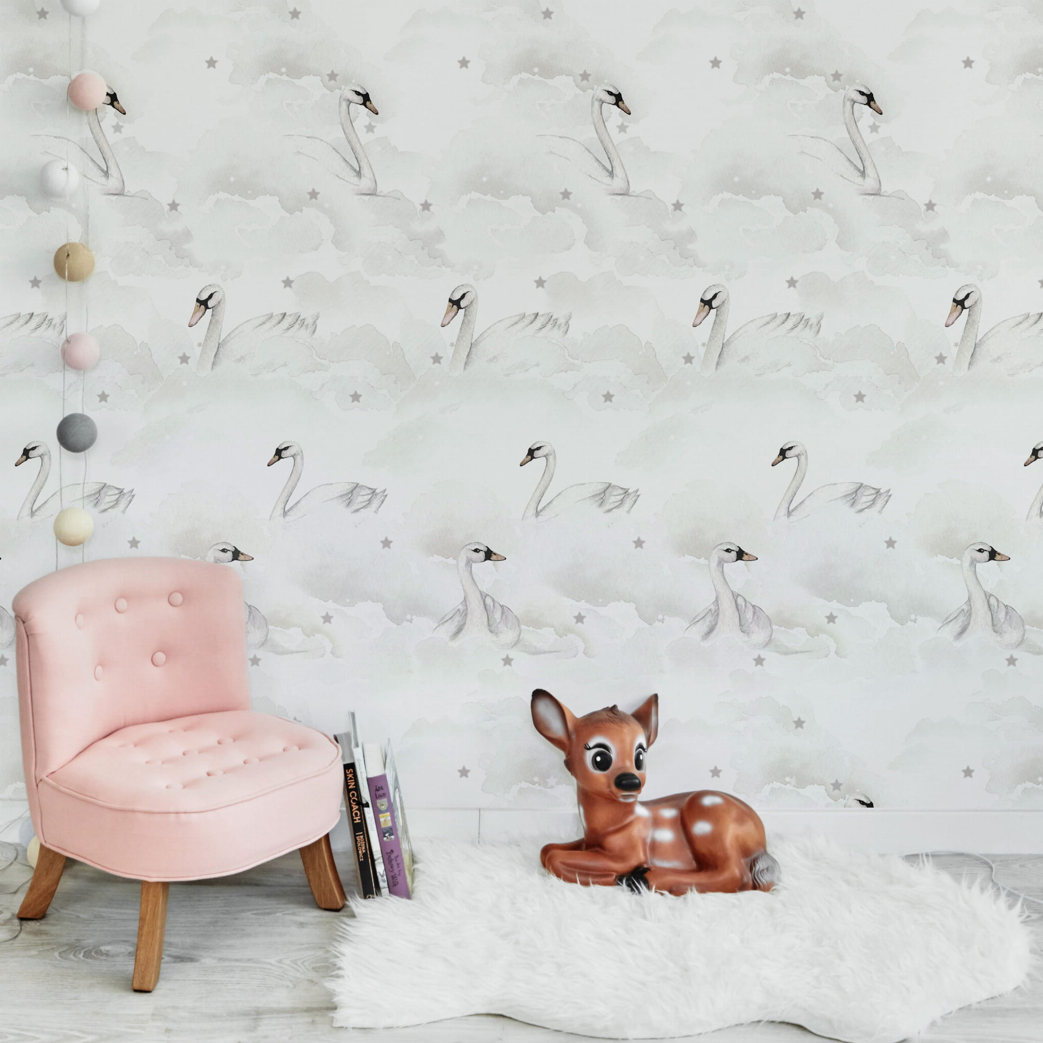 Tapeta do pokoju dziecka Swans