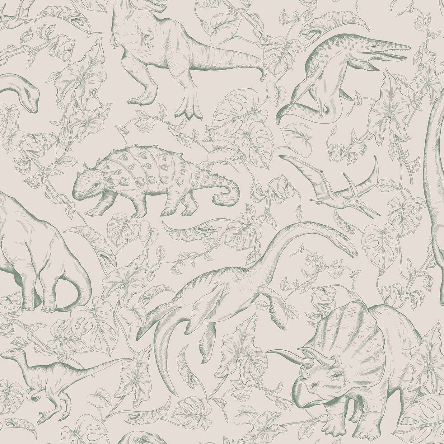 Tapeta do pokoju dziecka w Dinozaury Beżowo-Zielona