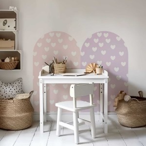 Subtelny wzór: Delikatne fioletowe serduszka w formie łuków wprowadzają do wnętrza przyjemny, romantyczny nastrój, idealny do pokoju dziewczynki, ale także wszędzie tam, gdzie chcesz dodać trochę magii.