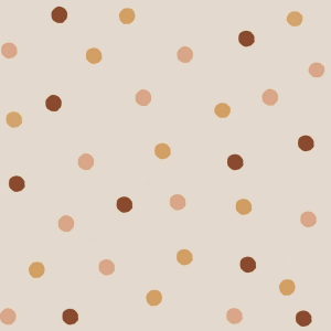Tapeta „Bouncy Dots” to radosna, a jednocześnie stonowana dekoracja ścienna. Delikatne kropki w neutralnych odcieniach tworzą subtelny rytm, który wnosi do wnętrza ciepło i naturalną energię.” Kropki w wersji drobnej mają średnicę 2,5 cm, natomiast w wersji dużej ok. 4,5–5 cm. Wzór świetnie wpisuje się w styl skandynawski, boho lub retro — zarówno jako tapeta na całą ścianę, jak i jako akcent dekoracyjny.