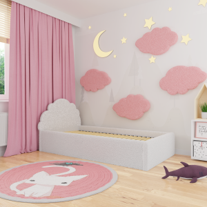 Tapicerowane łóżko dla dzieci Chmurka CLOUD z uroczym zagłówkiem w kształcie chmurki. Komfort, bezpieczeństwo i bajkowy design do pokoju Twojego malucha.