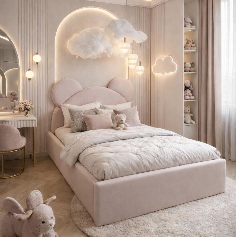Łóżko tapicerowane Miś Teddy – urocze, bezpieczne i personalizowane łóżko dziecięce z zagłówkiem w kształcie misia. Idealne miejsce do snu i zabawy Twojego dziecka.