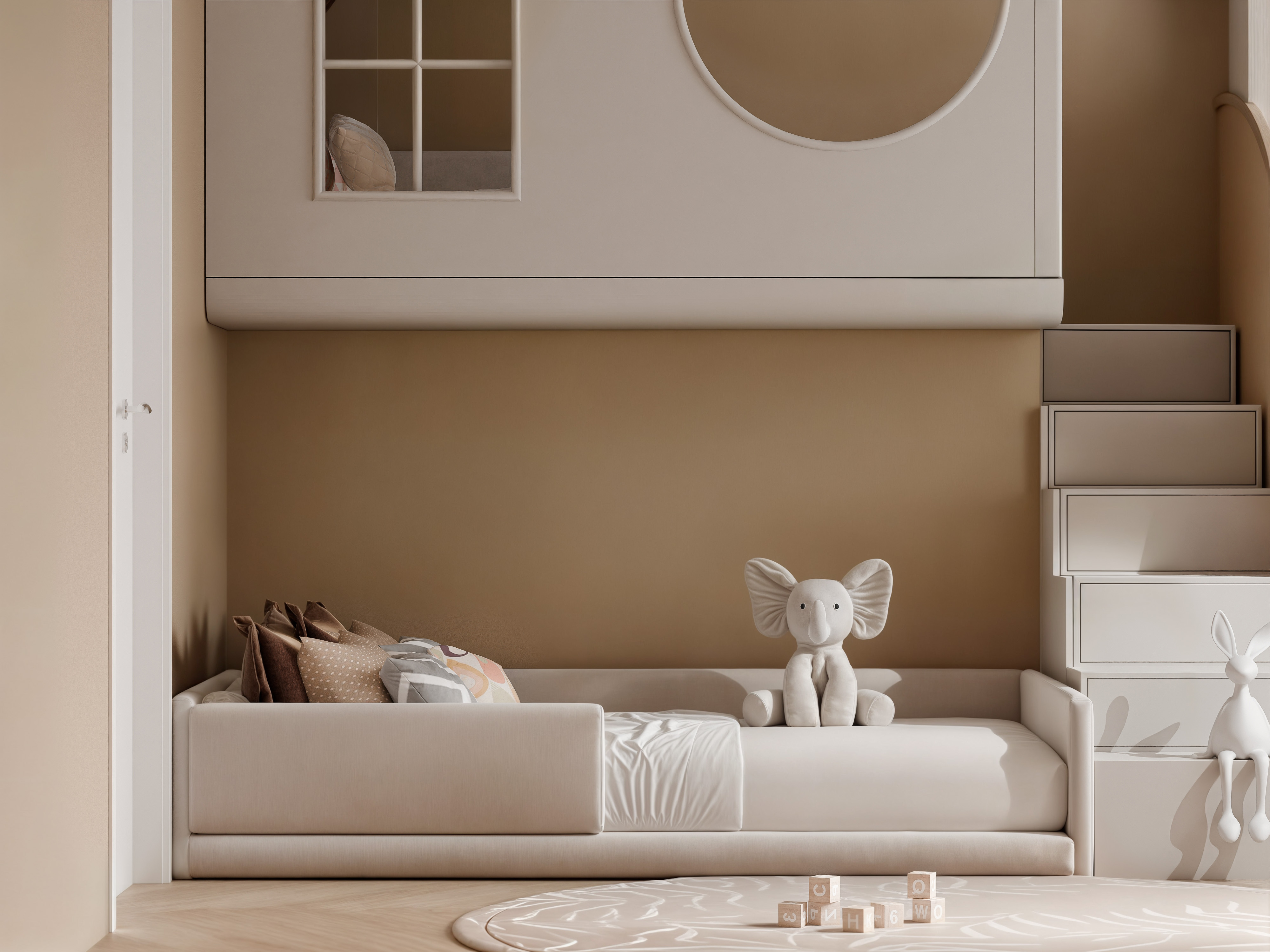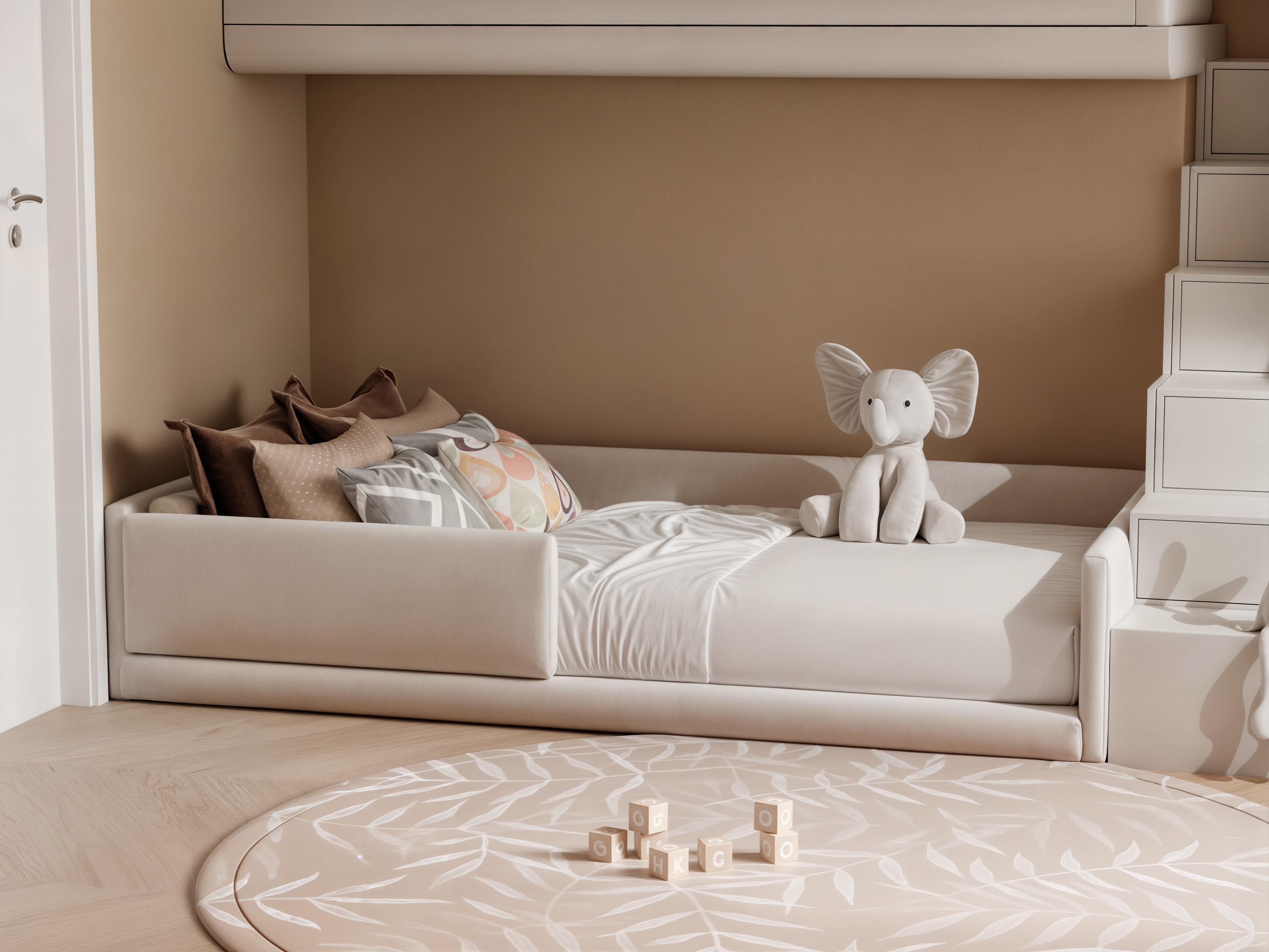 Łóżko dziecięce ARIEL to idealny wybór na pierwsze łóżko dla dziecka – łączy niską konstrukcję, miękkie tapicerowane boki i uniwersalny design, tworząc bezpieczne i przytulne miejsce do snu i zabawy.