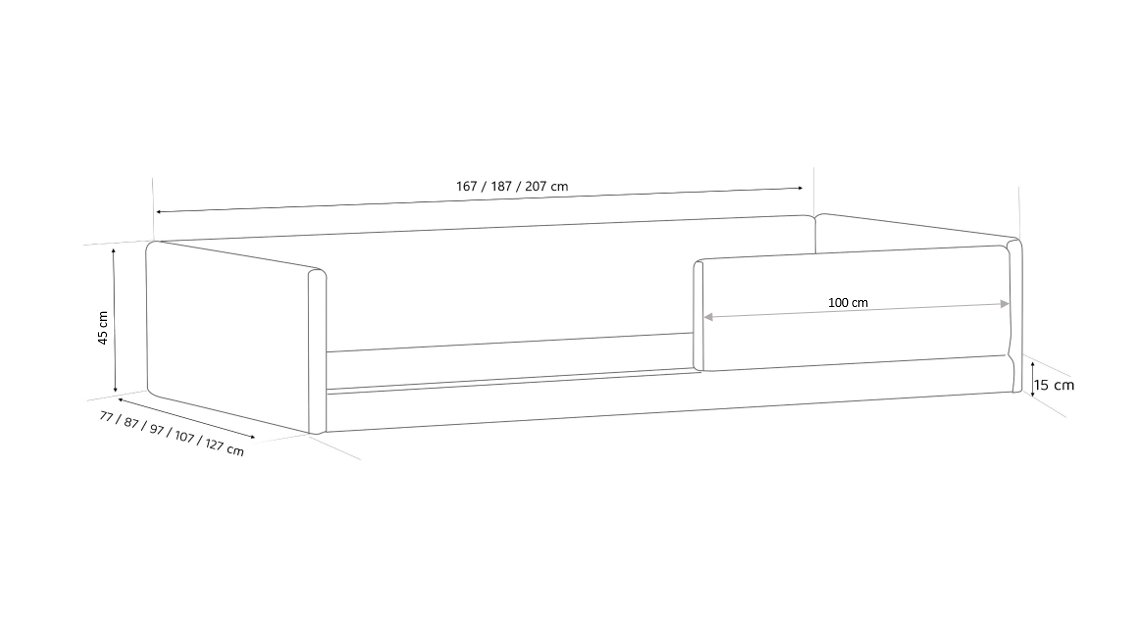 Łóżko tapicerowane ARIEL oferuje szeroki wybór tkanin obiciowych, dzięki czemu możesz stworzyć mebel idealnie dopasowany do stylu wnętrza i preferencji dziecka. Dostępne są tkaniny miękkie, welurowe, odporne na plamy, łatwe w czyszczeniu oraz premium – idealne do codziennego użytkowania.