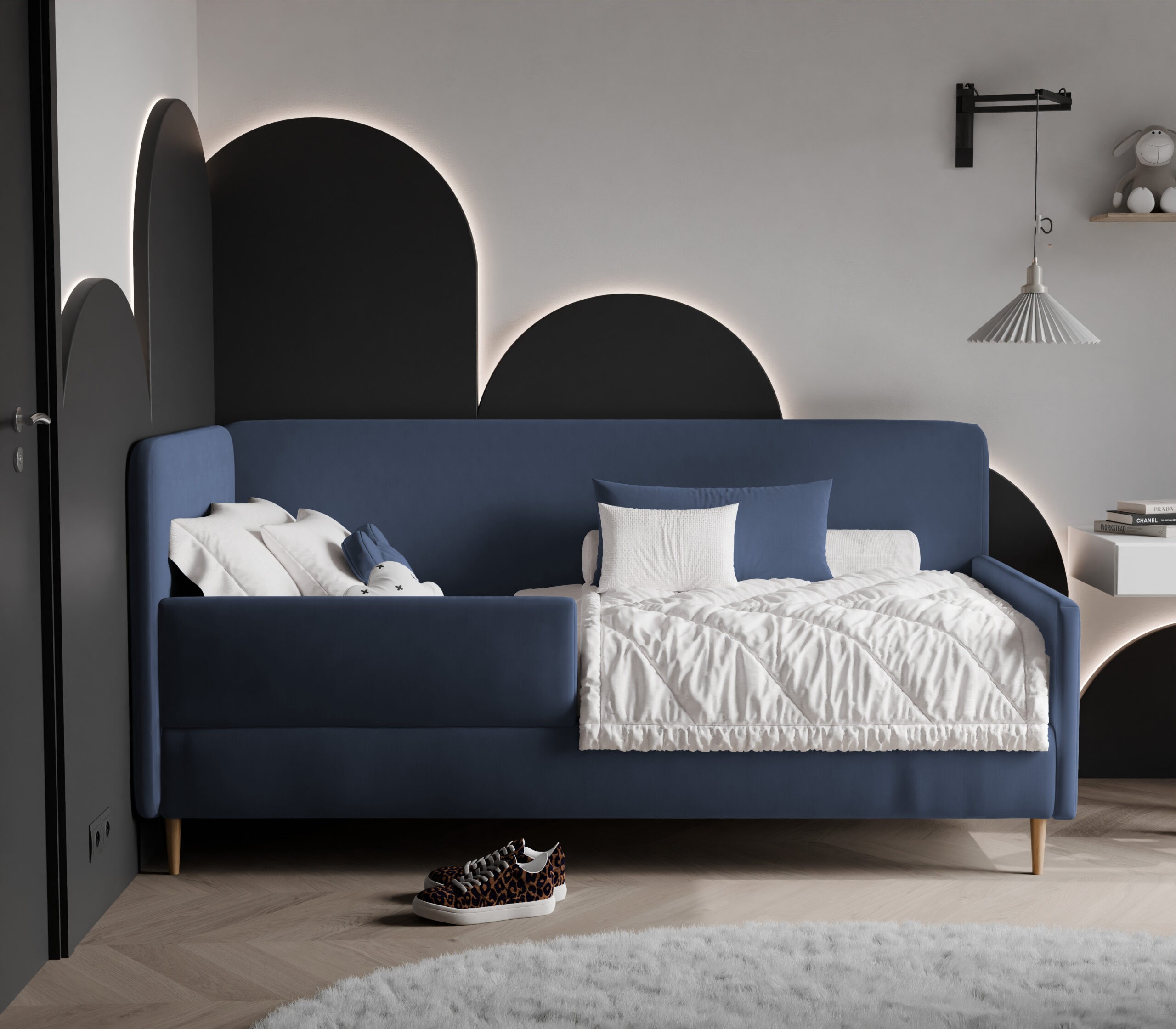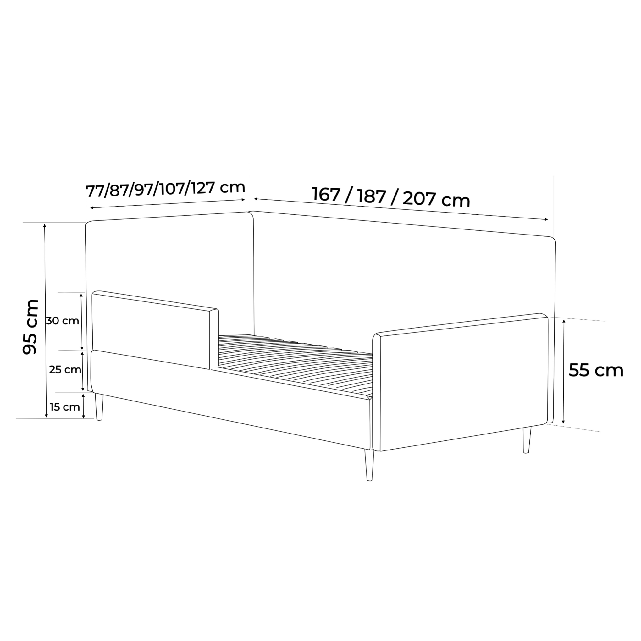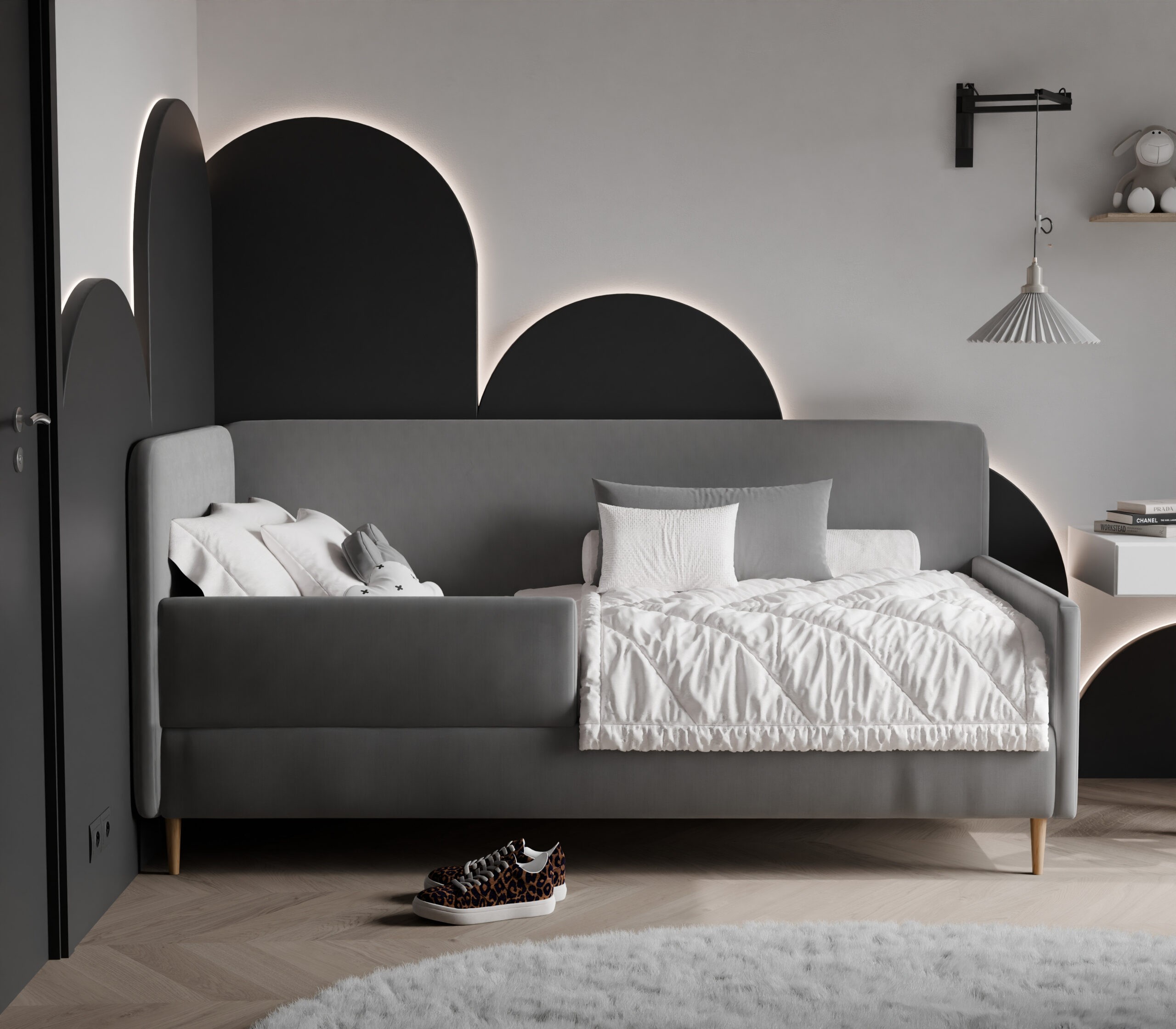 Łóżko wyróżnia się stylowym wyglądem dzięki pionowym, minimalistycznym przeszyciom. Uniwersalna forma sprawia, że łóżko dziecięce doskonale pasuje do różnych aranżacji wnętrz – zarówno nowoczesnych, jak i klasycznych.