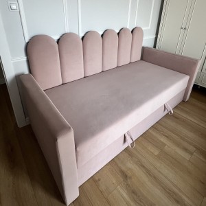 Łóżko posiada pojemny schowek na pościel pod materacem — pozwala na przechowywanie kołder, poduszek i innych rzeczy, co pomaga utrzymać pokój w porządku. Model spełnia funkcję 2 w 1: w ciągu dnia może pełnić rolę wygodnej sofy, a wieczorem oferuje komfortowy sen.