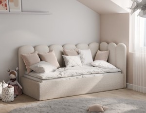 Łóżko ELSA jest praktyczne i wygodne w codziennym użytkowaniu. Dzięki pojemnikowi i podnoszonemu stelażowi łatwo zachować porządek w pokoju, a konstrukcja zapewnia bezpieczne i komfortowe miejsce do spania dla dziecka lub nastolatka. Model sprawdza się również jako dzienna sofa, oferując wygodne miejsce do siedzenia w ciągu dnia.