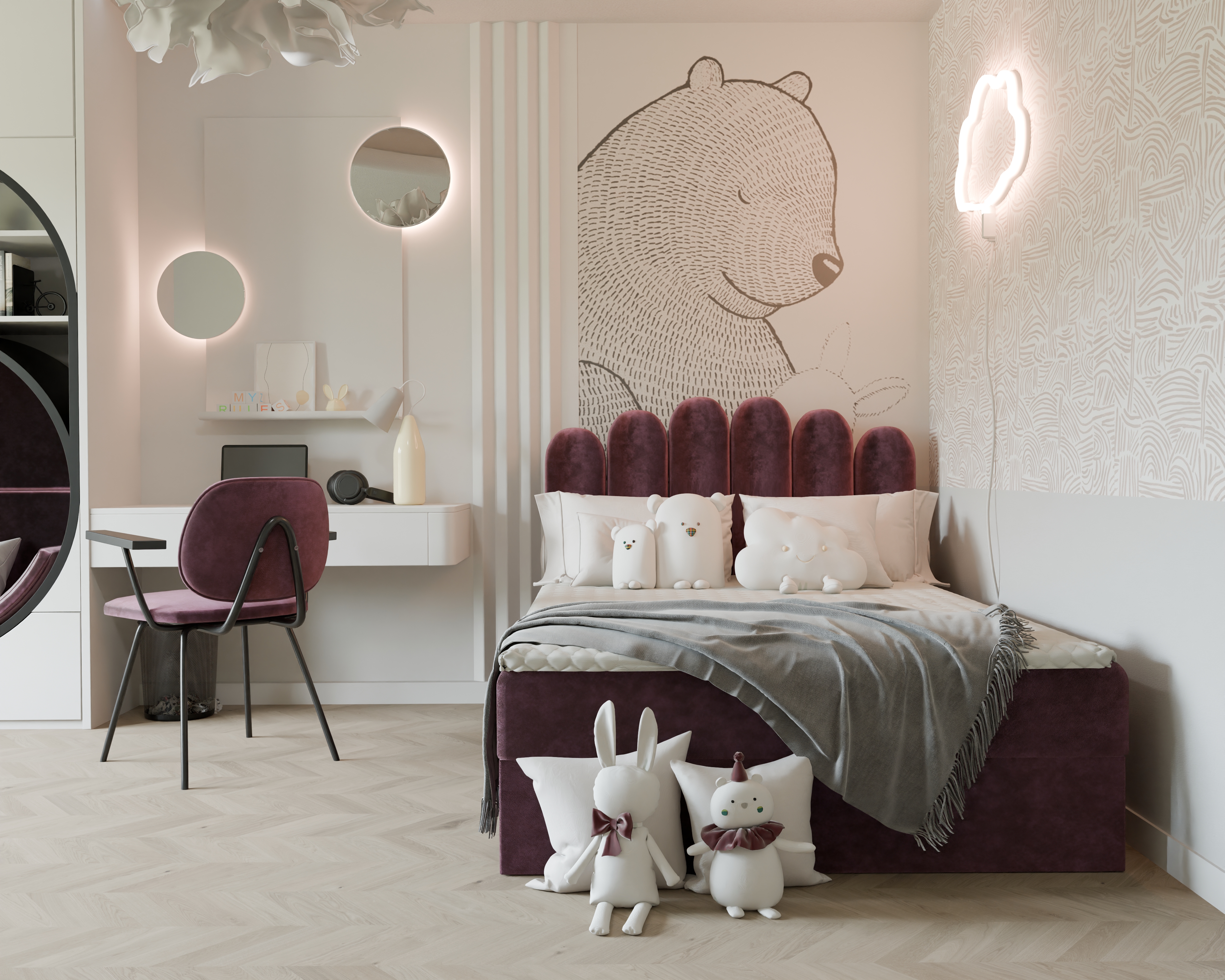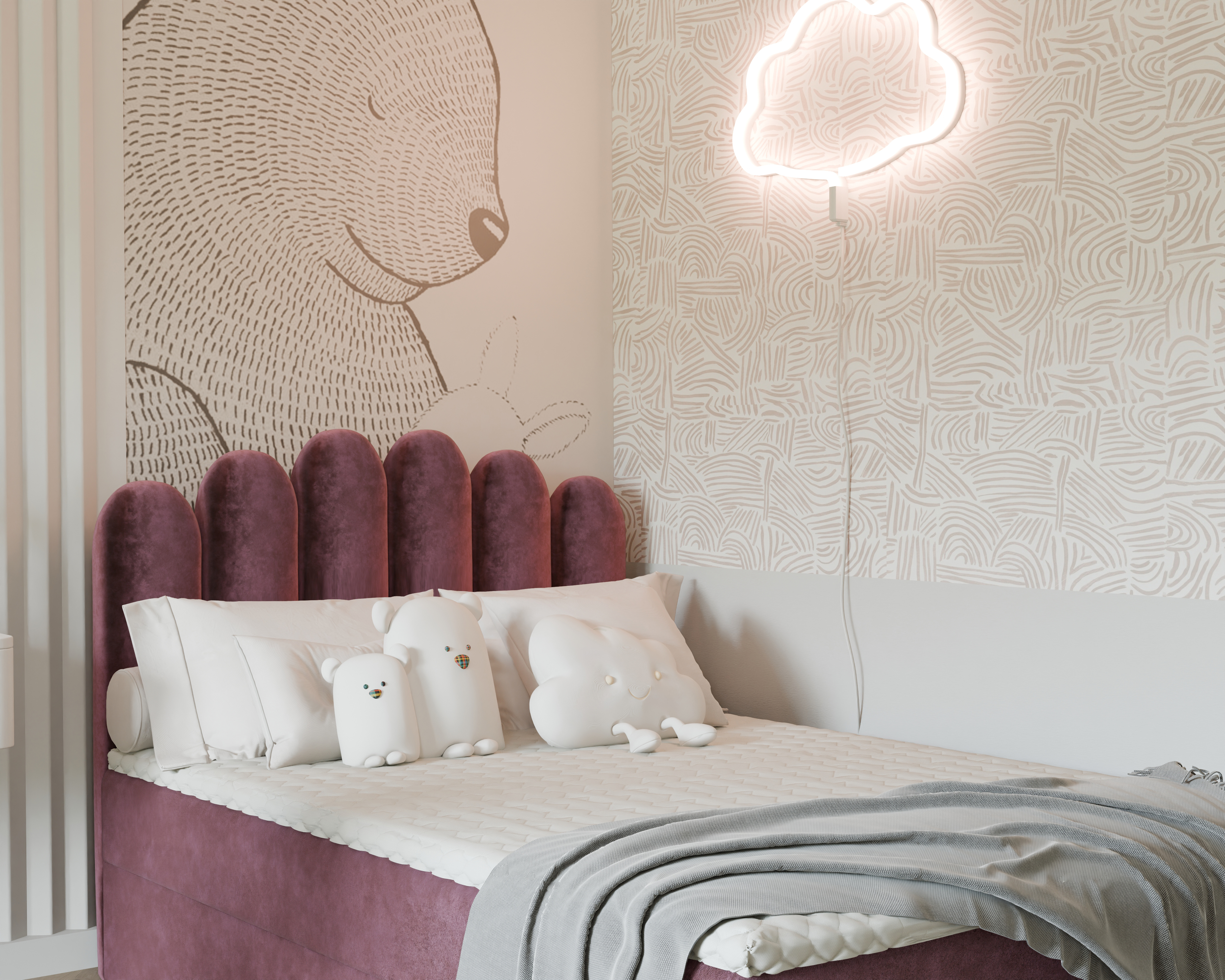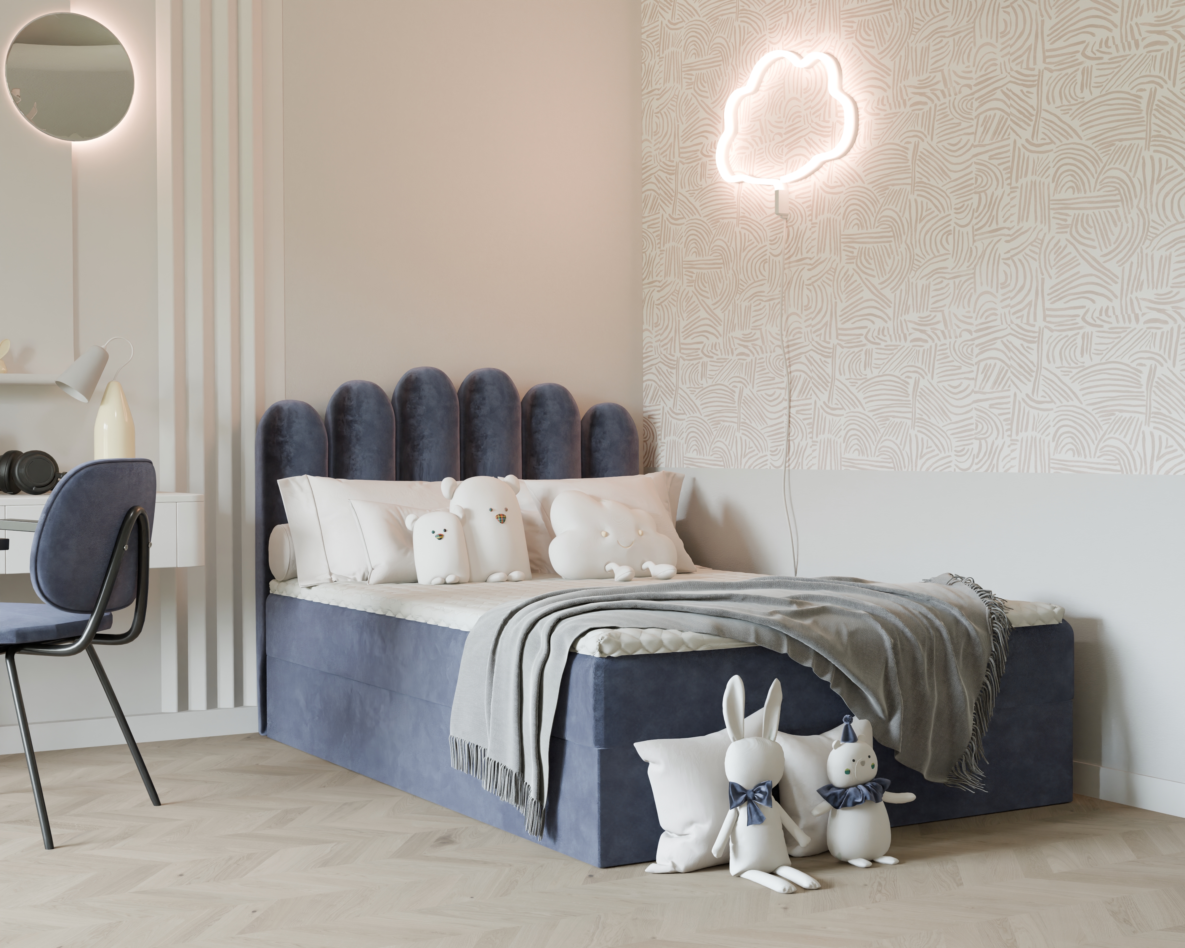 Stylowy element wnętrza – zagłówek typu „płotek” oraz możliwość wyboru tkaniny pozwalają stworzyć wyjątkowy klimat pokoju.