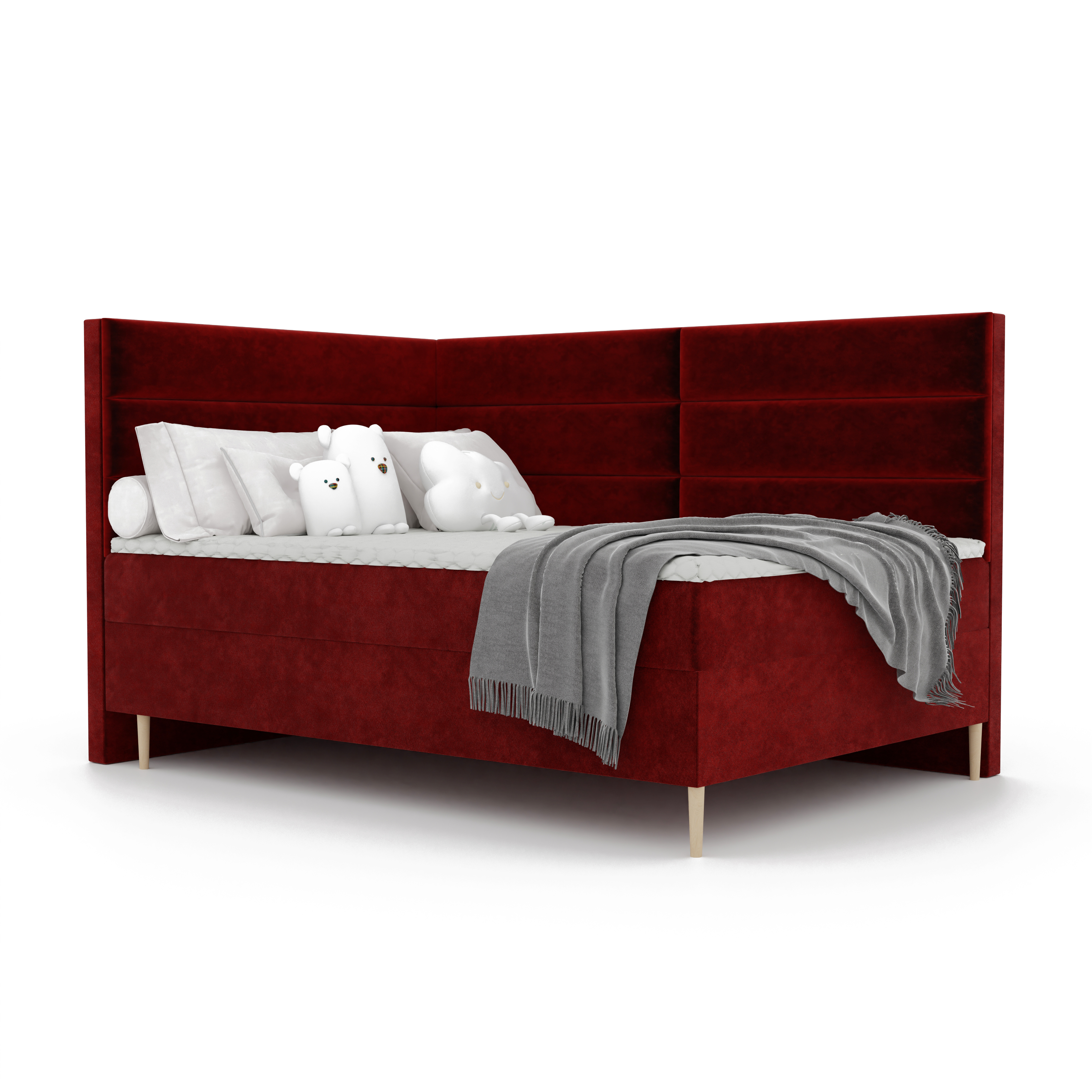 Dzięki temu łóżko sprawdzi się zarówno jako kompaktowe rozwiązanie do mniejszego pokoju, jak i jako komfortowe tapicerowane łóżko młodzieżowe dla wymagającego nastolatka.