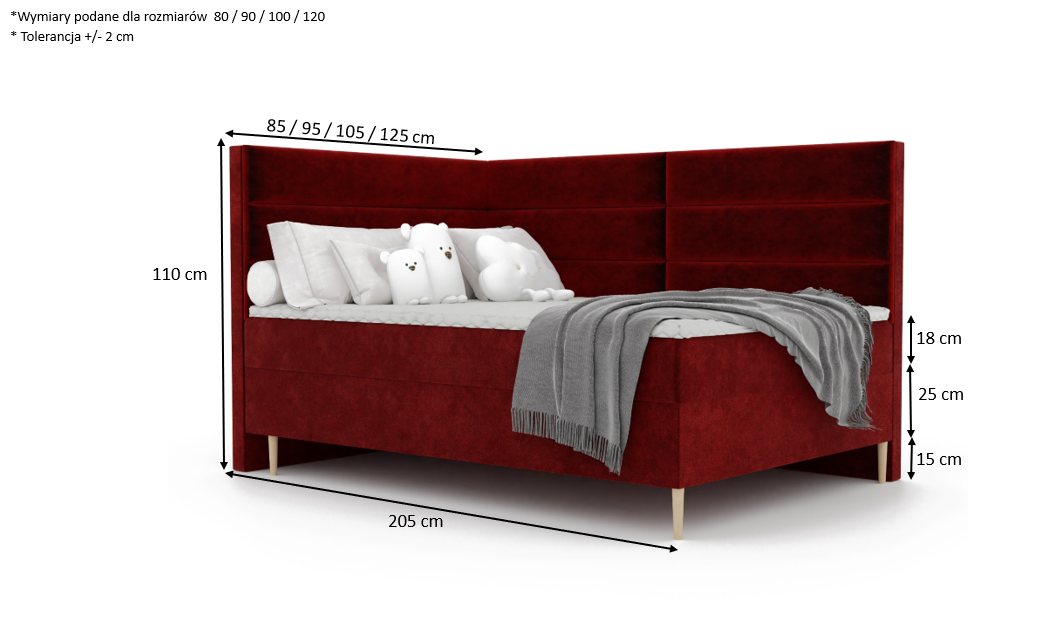 - Personalizacja – wiele rozmiarów, tkanin, kolorów i wysokości