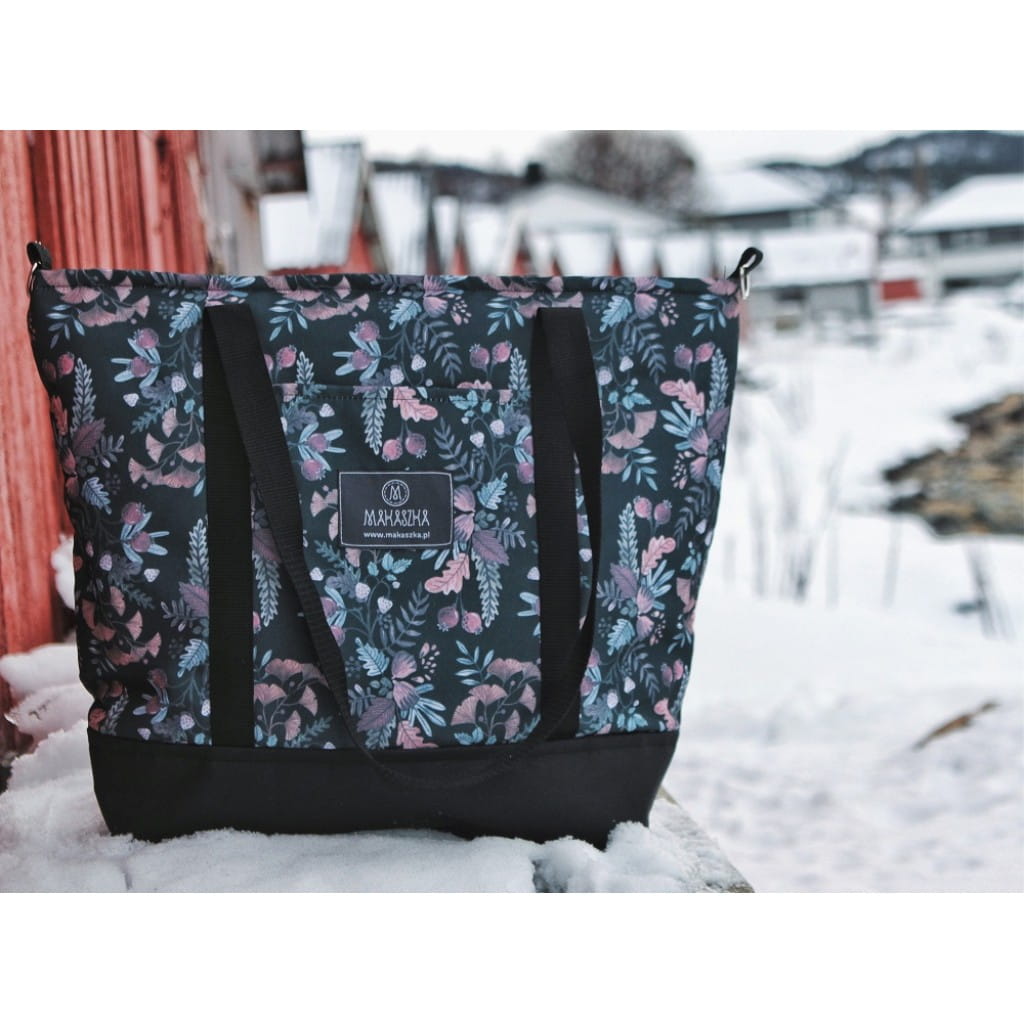 Shopper Bag w dużym rozmiarze dla nastolatki lub dorosłej. Wykonana z tkaniny wodoodpornej, idealna do użytku codziennego, zwłaszcza dla osób, które lubią wyraźne i graficzne dodatki. Idealna dla mam, kobiet, które nie lubią chodzić obładowane siatkami, świetna na plażę, lub piknik. Fantastycznie przydaje się do szpitala, kiedy jedziesz rodzić Maluszka - możesz spakować do niej wszystkie potrzebne dla niego rzeczy i włożyć ją do swojej walizki. Długość uszu dopasowana jest tak, byś czuła się komfortowo.