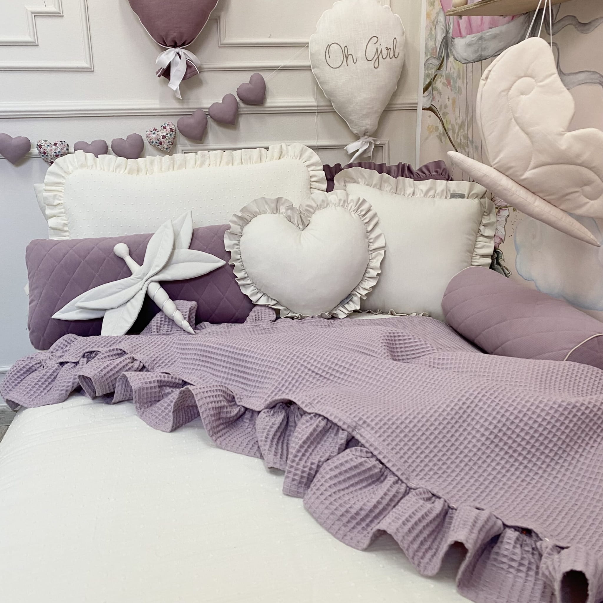Narzuta została uszyta z jednowarstwowej tkaniny bawełnianej, która jest przewiewna i przyjazna dla skóry dziecka. Struktura wafelka sprawia, że materiał wygląda bardzo estetycznie i świetnie pasuje do nowoczesnych aranżacji pokoju dziecięcego.