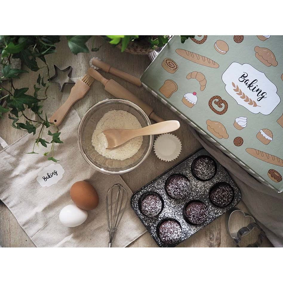 Taca do pieczenia, foremki, wałek, trzepaczka, narzędzia do dekoracji, miska do wypieków i inne kuchenne akcesoria małego piekarza, które pobudzą do wielogodzinnych rodzinnych chwil spędzonych na smacznym pichceniu.