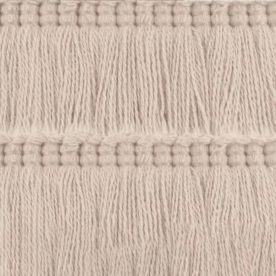 Frędzle dekoracyjne – bawełniane frędzle wszyte wokół narzuty nadają delikatnego, stylowego charakteru.