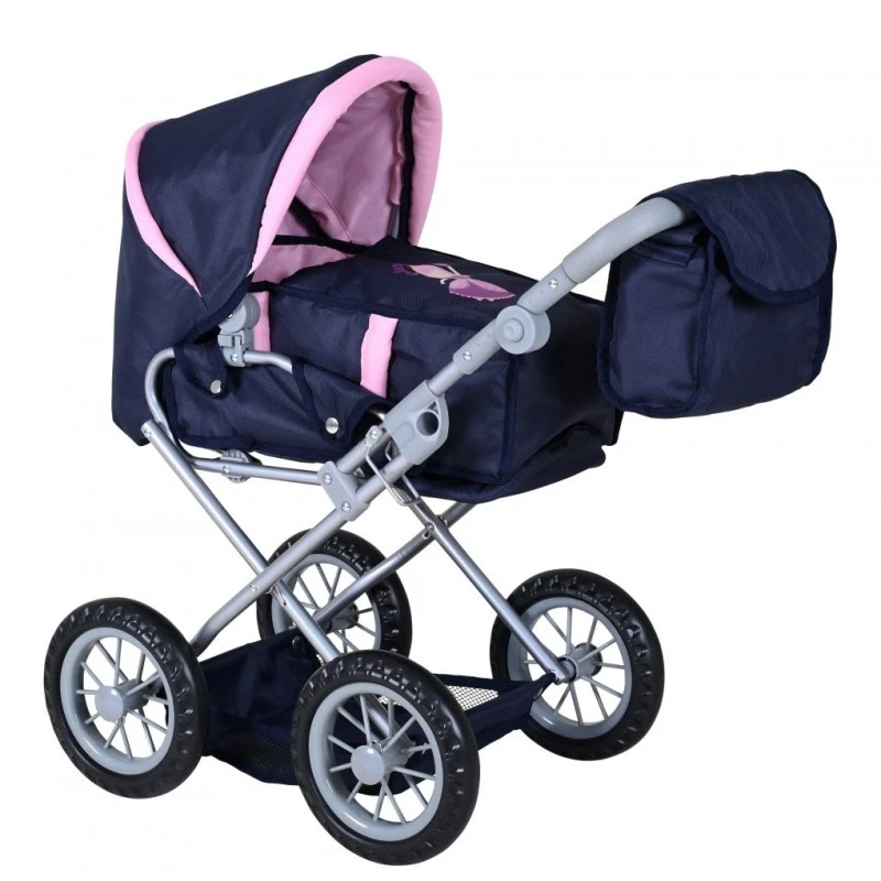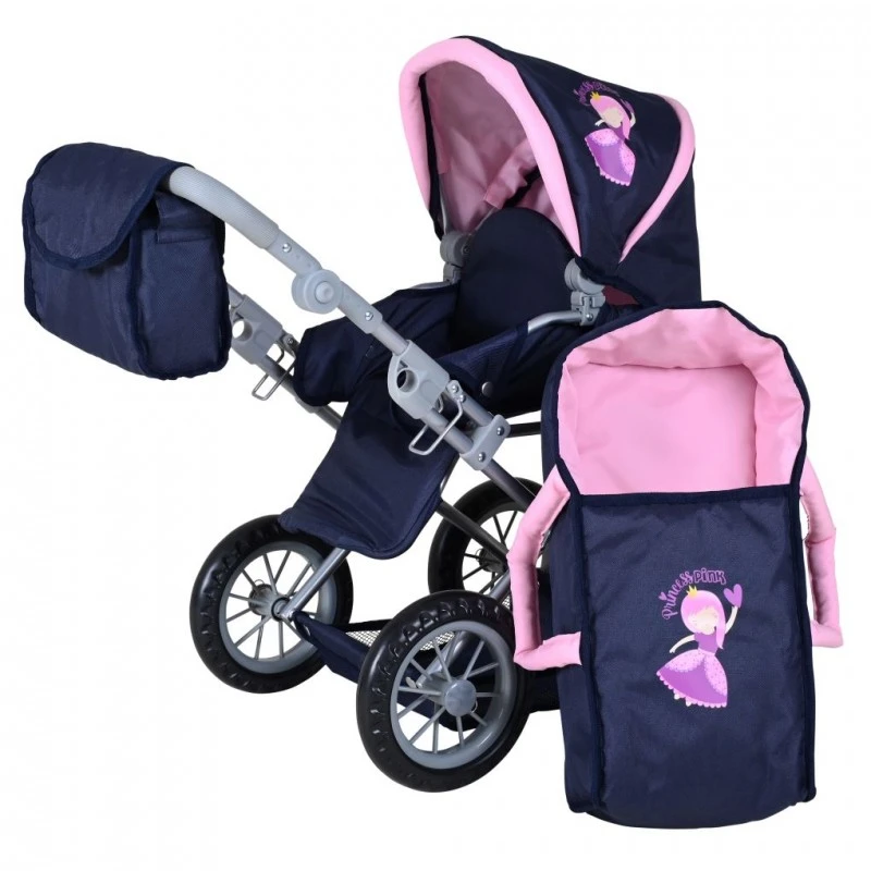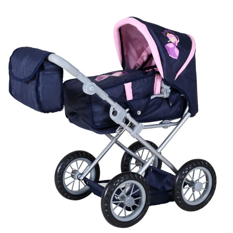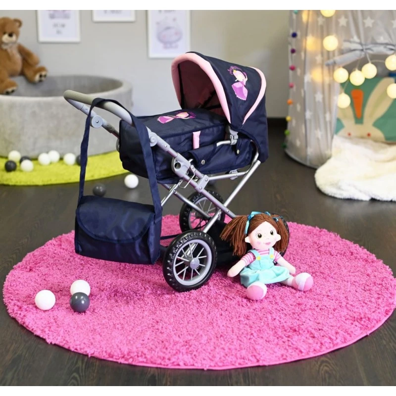 Granatowo-różowa kolorystyka oraz motyw księżniczki nadają wózkowi wyjątkowego charakteru, dzięki czemu przyciąga uwagę i doskonale wpisuje się w dziecięce marzenia. To idealny wybór dla każdej małej opiekunki lalek.