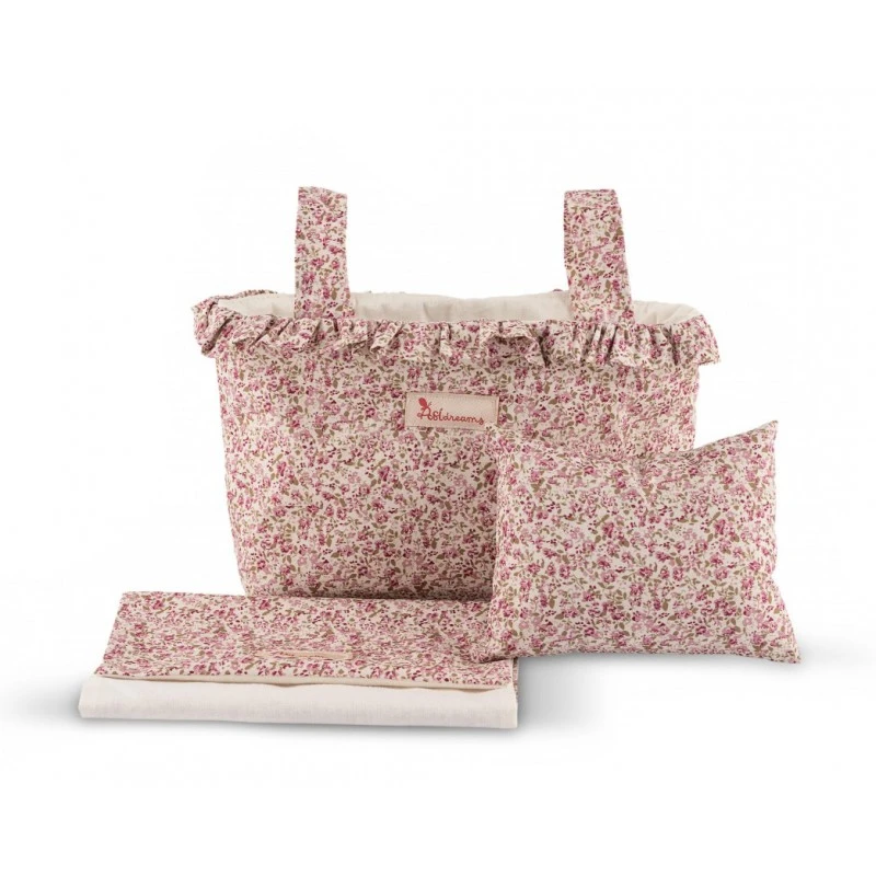 - prześcieradło i miękka poduszka w kwiatowy wzór
