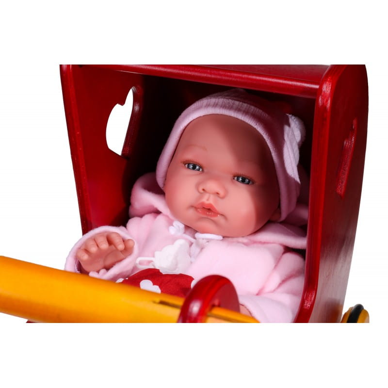 Zabawka przeznaczona jest dla lalki do wysokości 35 cm. Model urzeka precyzyjnym wykonaniem i designem w stylu retro. Efektu dodają dwa wyżłobione serduszka po bokach wózka. Twoje dziecko uwielbia bawić się lalkami? Zabawka na pewno spodoba się miłośniczkom lalek poświęcającym czas na ich opiekę. Przywołaj wspomnienia z dzieciństwa, oczaruj swoją pociechę zabawką sprzed lat i odkryj na nowo dziecięcy świat. Tylko naturalne materiały Zabawka w całości wykonana jest z naturalnej okleiny brzozowej o grubości 10 mm oraz drewnianych kół zakończonych gumową taśmą. Wózek pokryty jest ekologiczną farbą z atestem. Zatem nie musisz martwić się o substancje uczulające.