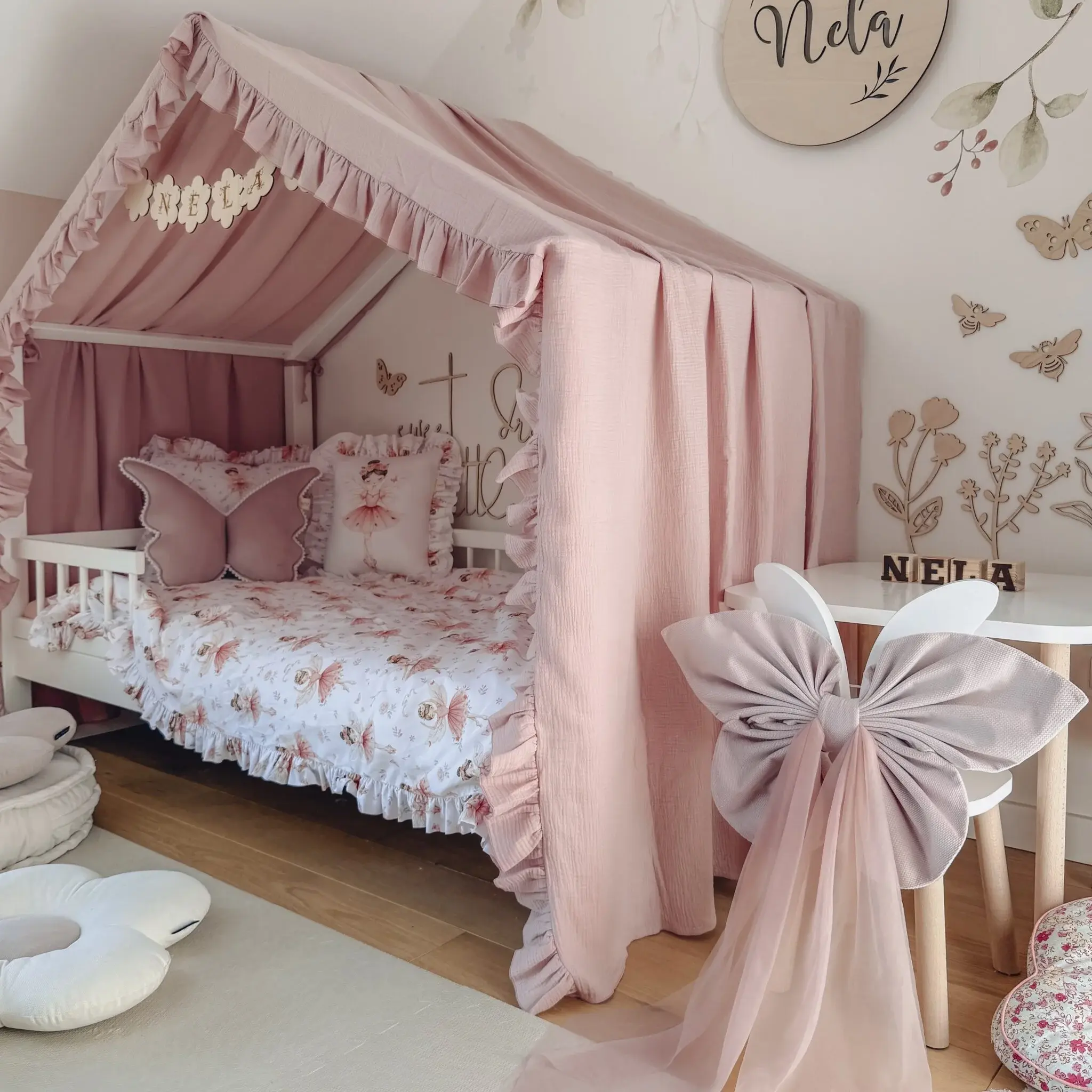Zasłonki/baldachim do łóżeczka domek z muślinu z falbankami różna kolory i rozmiary