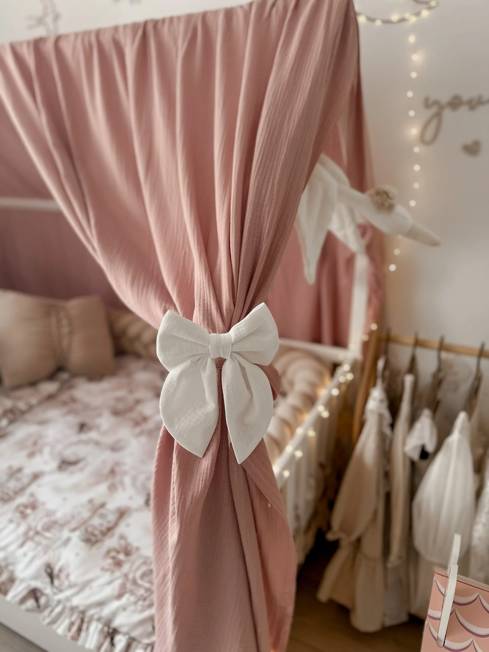 Bajecznie delikatne zasłonki z miękkiego muślinu bawełnianego tworzą przytulną przestrzeń w łóżeczku-кąciku idealnym do zabawy i odpoczynku. Prosty montaż za pomocą troczków i szeroka gama kolorów pozwalają łatwo dopasować je do każdej aranżacji.