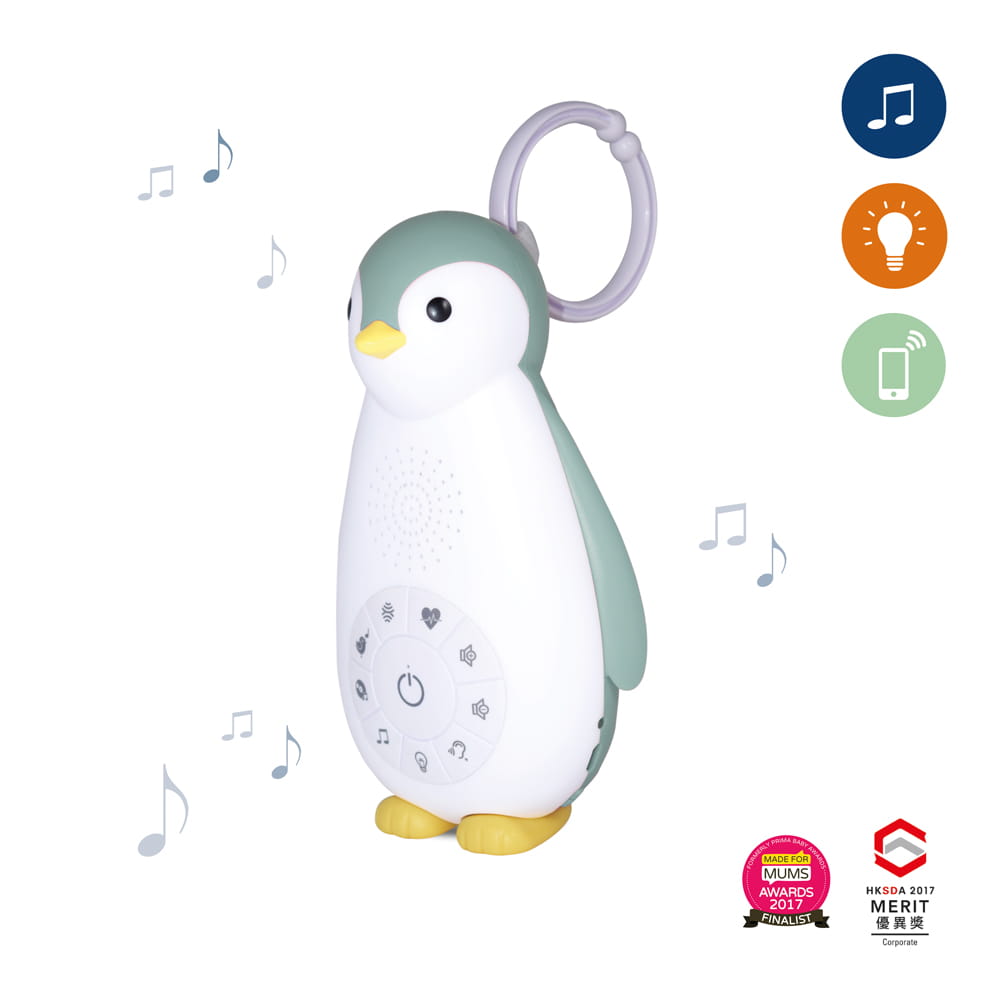 Baby Sensor - czujnik w pingwinku uaktywni się na dźwięk płaczu (lub inny głośny hałas z otoczenia) uruchamiając ostatnią melodyjkę lub światełko. Auto-wyłączanie po 20 minutach aktywności, Zoë wyłączy się automatycznie.